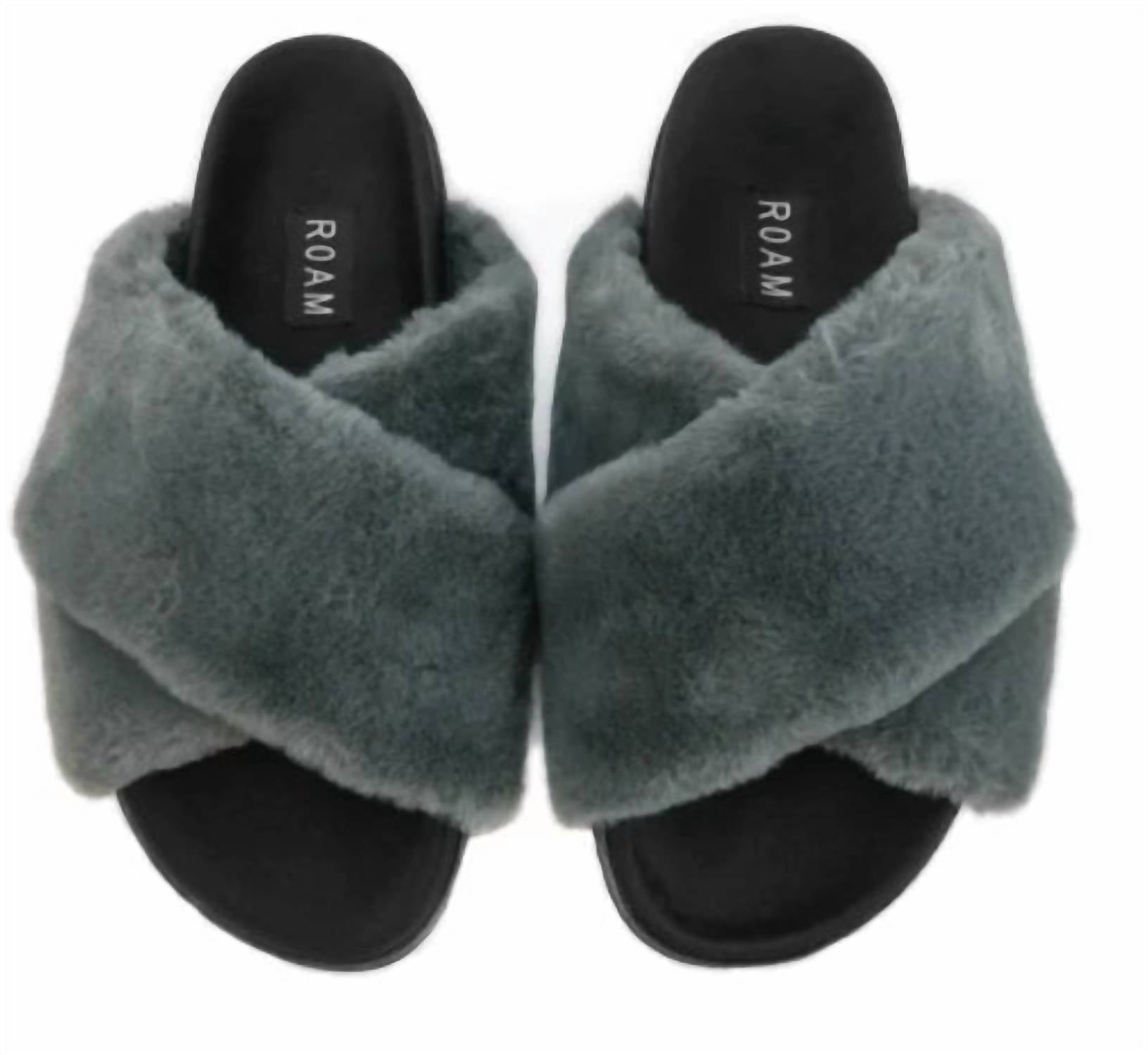 Slip into these, we promise you won't regret it. Step into plush comfort and style with the Women's Mini Cloud Slides by ROAM, designed to elevate your casual wardrobe with a luxurious grey faux fur upper. These slippers, crafted with hand-selected high-quality faux fur, offer a unique memory foam integration combined with an additional cotton fleece backing for an unparalleled soft feel. Made in LA, the lightweight sole ensures flexibility and shock absorption, making them perfect for versatile wear from city exploring to lounging post-workout. Enjoy a perfect fit by sizing up one full size from your usual.