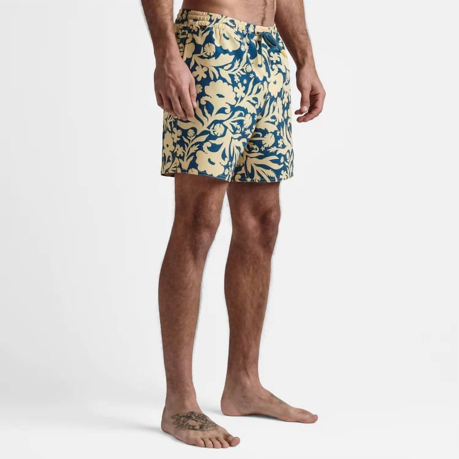 Introducing the ROARK Shorey Volley Shorts, designed in vibrant Cagliari Costa floral print for the ultimate in comfort and style. These board shorts feature an elastic waistband and sit above the knee with a 16-inch outseam and 6-inch inseam. Crafted from a 48% recycled polyester, 36% polyester, 9% hemp, and 7% elastane blend, they offer a water-resistant DWR finish and four-way stretch for optimal movement. Equipped with sideseam and back patch pockets, these shorts are perfect for a leisurely day by the water. Care: Hand wash, line dry.
