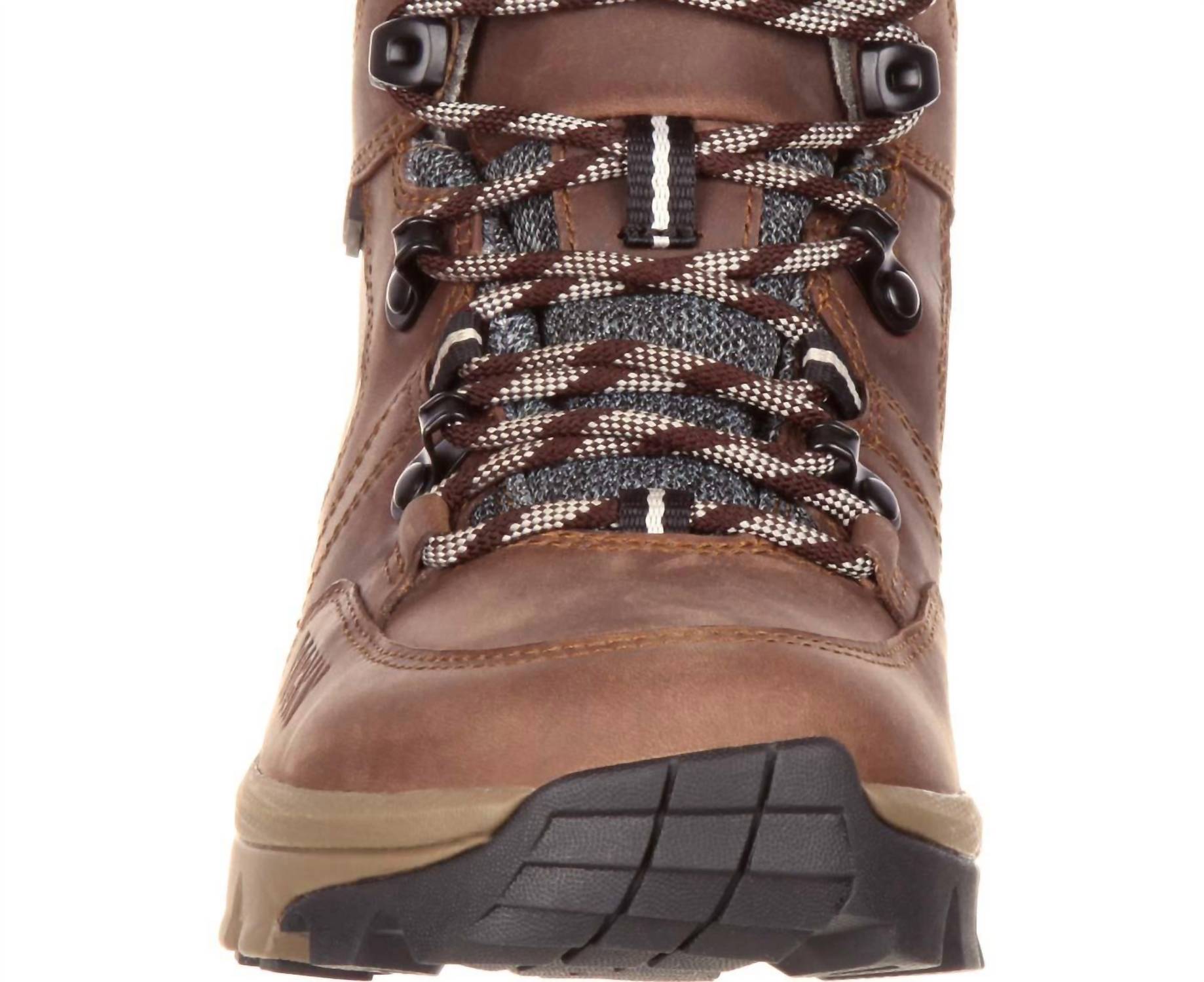 A stylish lace-up boot with a comfortable fit and classic design. Versatile enough to wear with almost every outfit, your closet and feet will be thanking you. Introducing the Women's Endeavor Point Waterproof Hiker Boots by Rocky in a versatile tan color, perfect for any outdoor adventure. Crafted with a full-grain leather upper and featuring a Guaranteed Rocky® Waterproof construction, these boots offer durability and style. The flexible dual-density outsole and Comfort Track footbed ensure comfort, while the boot stands 5 inches tall with a 1.5-inch heel height. Weighing just 0.85 lbs in size 8M, these boots are a comfortable and reliable choice for any hiking expedition.
