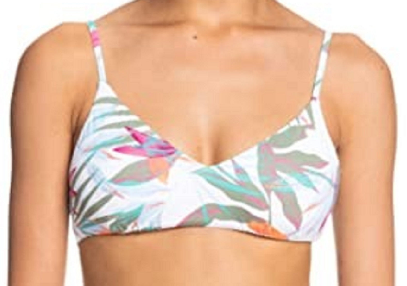Roxy BRIGHT WHITE FLORAL OF PARADISE Beach Classics Bikini Swim Top| US X-Large