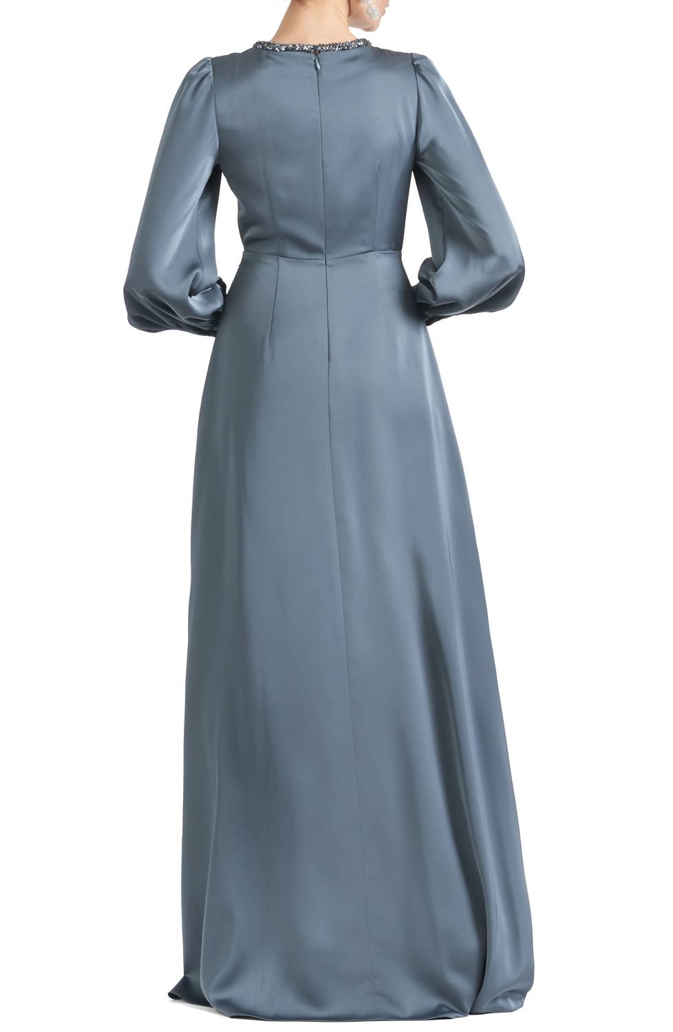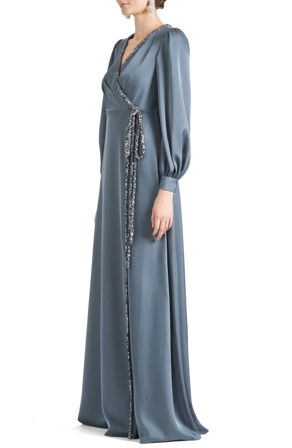 A maxi dress that is just as cute as it is comfortable. The Dorthea Sequin Trim Gown by SACHIN & BABI is a luxe statement piece perfect for any sophisticated event. This women's gown in gunmetal features long sleeves and a glamorous A-line silhouette, crafted from soft satin crepe. Measuring 60 inches in length, the design includes a back zipper closure for a refined fit. Composition: 100% Polyester. Care: Dry clean only. Ideal for spring's 90s fashion trend and festive New Year's Eve occasions.