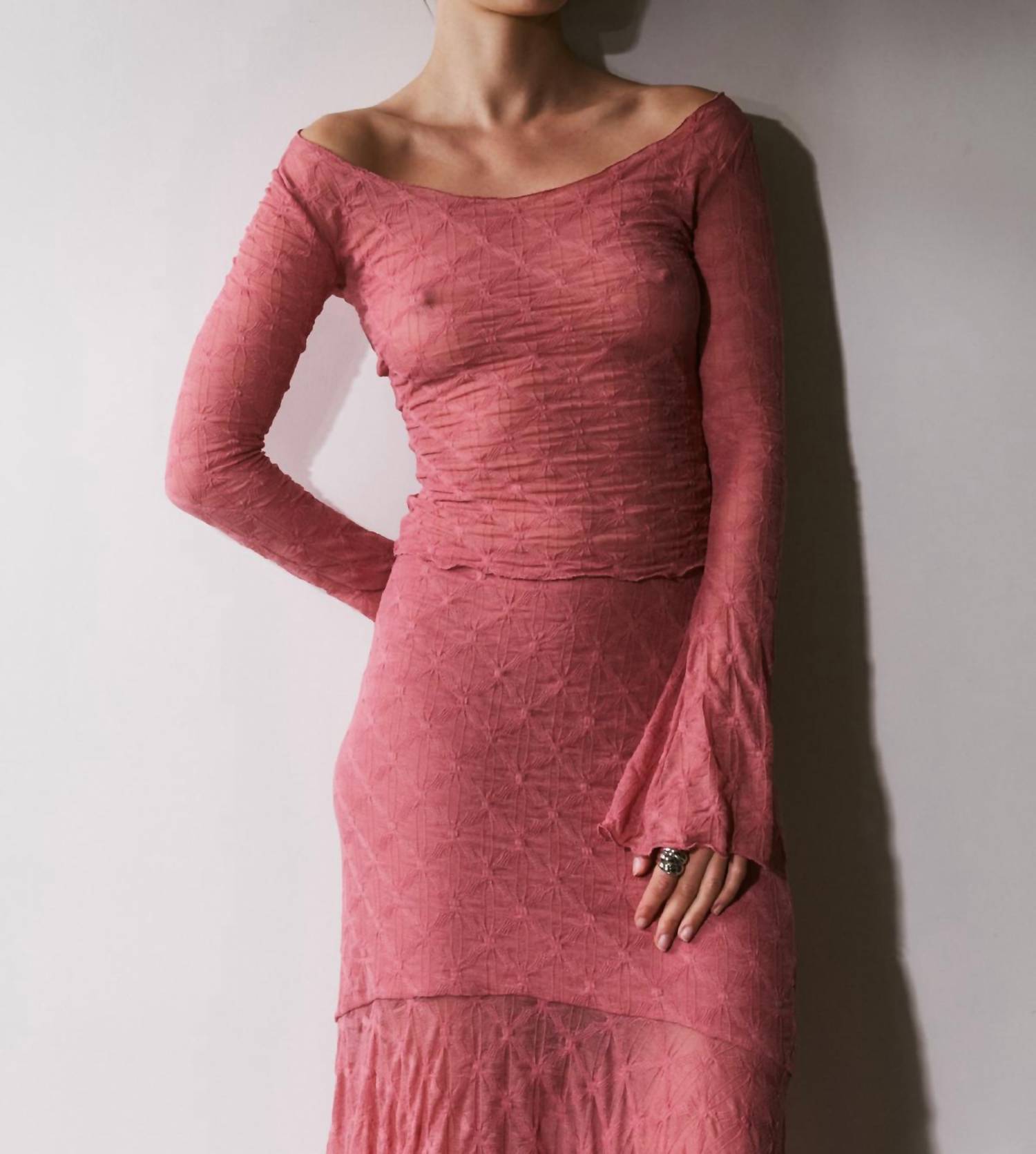 This asymmetrical skirt will take you from desk to dinner. Discover the Women's Crinkled Jersey Skirt by SAEMDI, crafted for a boho chic look that is perfect for a holiday party. This asymmetrical piece falls to a low calf length and is designed with a textured pattern in a stylish mauve shade. Made from an 88% nylon and 12% spandex blend with a 95% rayon and 5% spandex lining, this skirt offers a fitted, comfortable feel. Closure: Pull on. The model is wearing a size S and stands 170 cm tall.