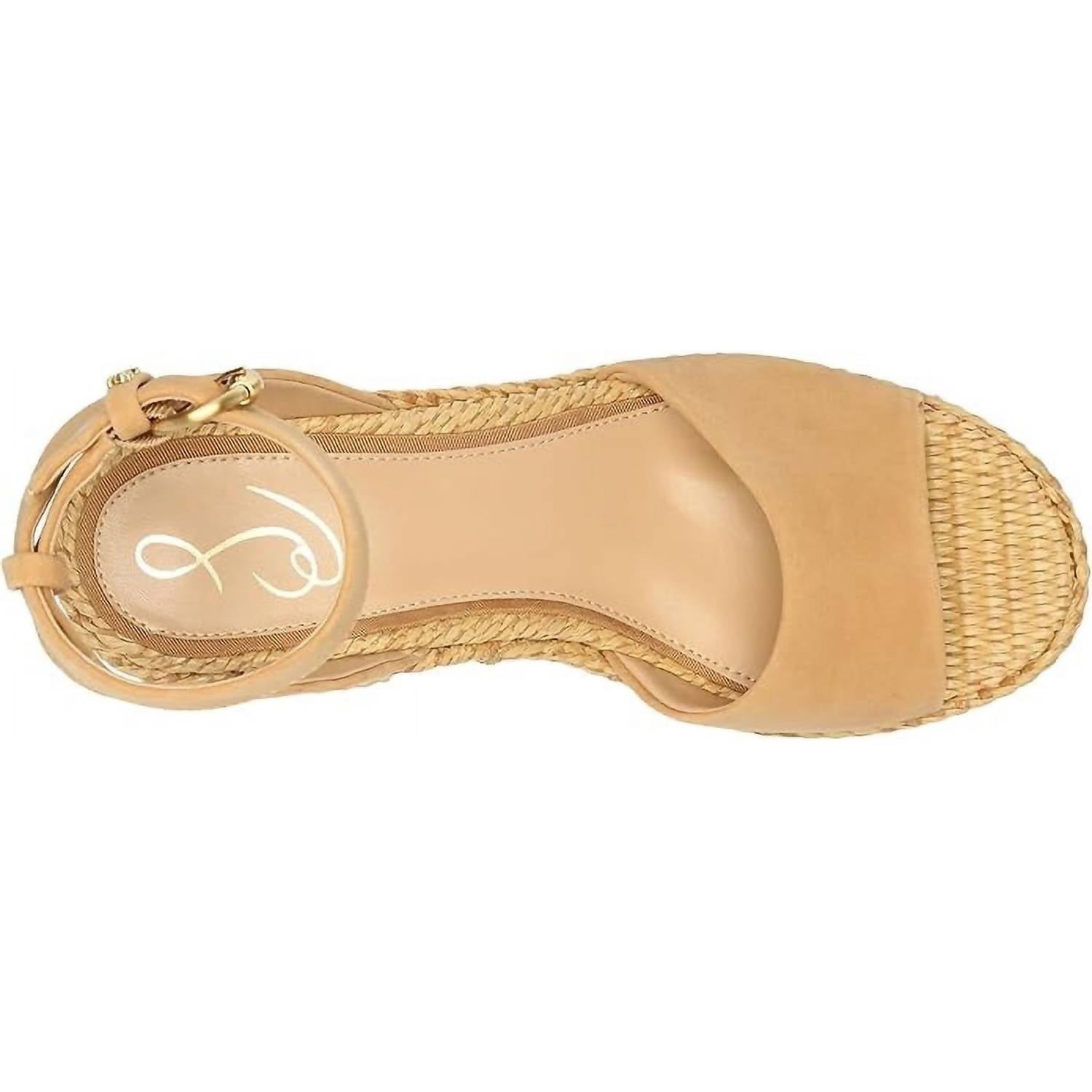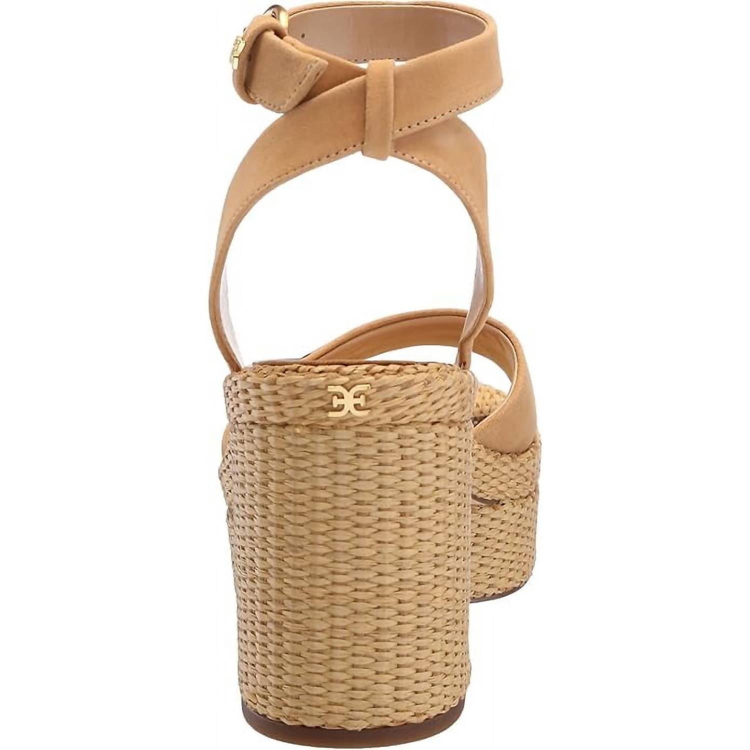 Elevate your style with the Women's Immie Ankle Strap Open Toe Block Heeled Fashion Sandals by Sam Edelman in sophisticated Sand Dune. These platforms feature a 4-inch block heel and a 1.25-inch platform, providing just the right height for any occasion. Expertly crafted from a blend of fabric and leather with a synthetic insole, this chic sandal is secured with a buckle closure, making it perfect for both summer suiting and after-hours attire. Ideal for the fall season, particularly for Thanksgiving gatherings or vacation outings.