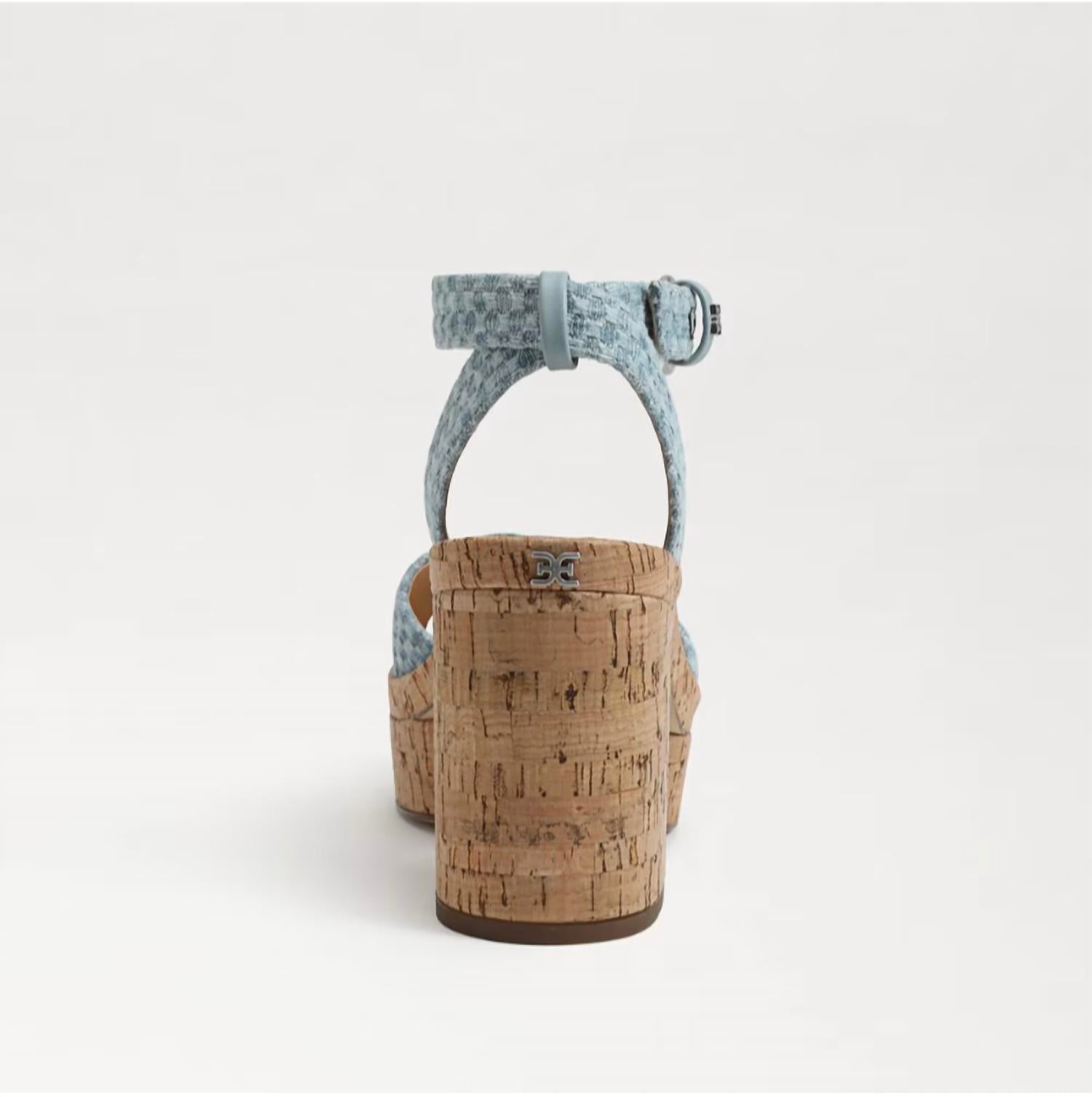Add a little height with the perfect platform. Step into style with the Women's Immie Ankle Strap Open Toe Block Heeled Sandals by Sam Edelman, crafted in a chic Montrose Blue hue. These sophisticated platforms feature a striking 4-inch structured block heel with a 1.25-inch platform for added comfort, combining fabric and leather materials for a premium finish. The synthetic insole ensures a comfortable fit, accentuated by a convenient buckle closure for secure wear. Perfect for summer suiting or evening cocktail attire, these sandals are your go-to for any event.