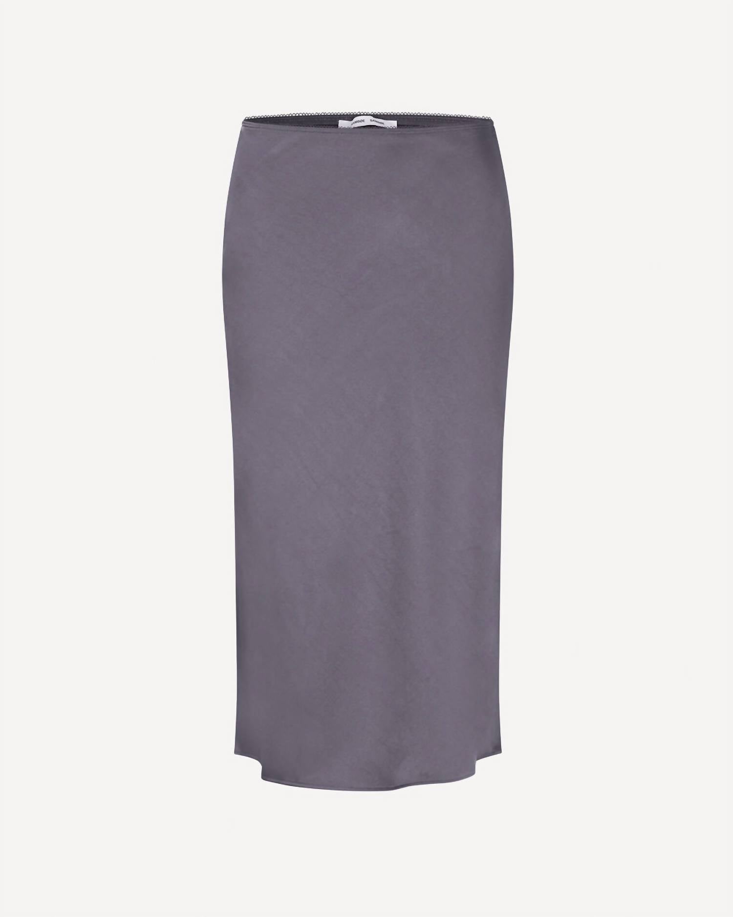 Tuck your favorite tee into this midi length skirt for an effortlessly cool look. Elevate your evening ensemble with the Agneta Skirt by SAMSOE, designed to offer a sophisticated look in an excalibur hue. This midi-length skirt features a bias-cut slim fit and softly flared hem, crafted from a 100% recycled polyester blend for a subtle sheen and decorative waist trim. Closure: Pull-on style. Care: Machine wash at 30 degrees (normal), wash inside out, do not bleach EU, iron at low temperature, PCE only, do not tumble dry. Perfect for spring soirées and work events.