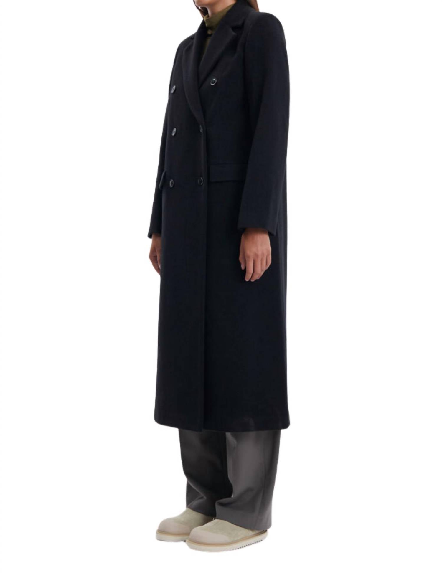 Wrap yourself in sophistication with the Falcon Coat by SAMSOE, crafted for women who appreciate a touch of elegance. This winter staple features a classic long sleeve design and is made from a luxurious wool blend comprising 70% recycled wool, 20% polyester, 5% other fibers, and 5% recycled polyamide. The solid black trench coat style boasts a straight cut body, enhancing its polished workwear appeal. With a double-breasted button closure, a chic collar neckline, and practical pockets, it promises both style and functionality. To maintain its pristine look, this coat is best kept fresh with dry cleaning.