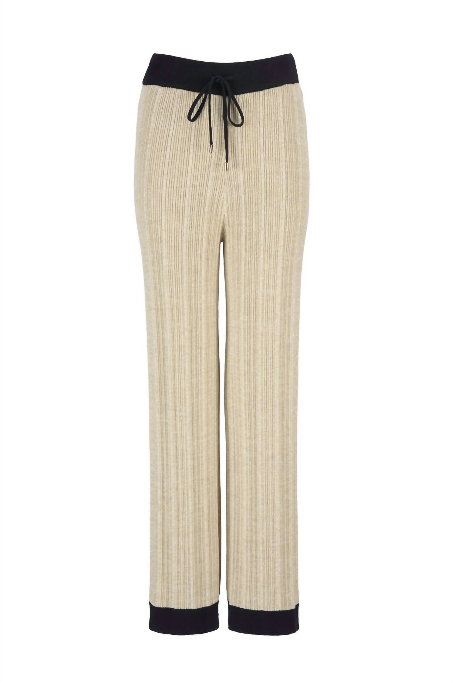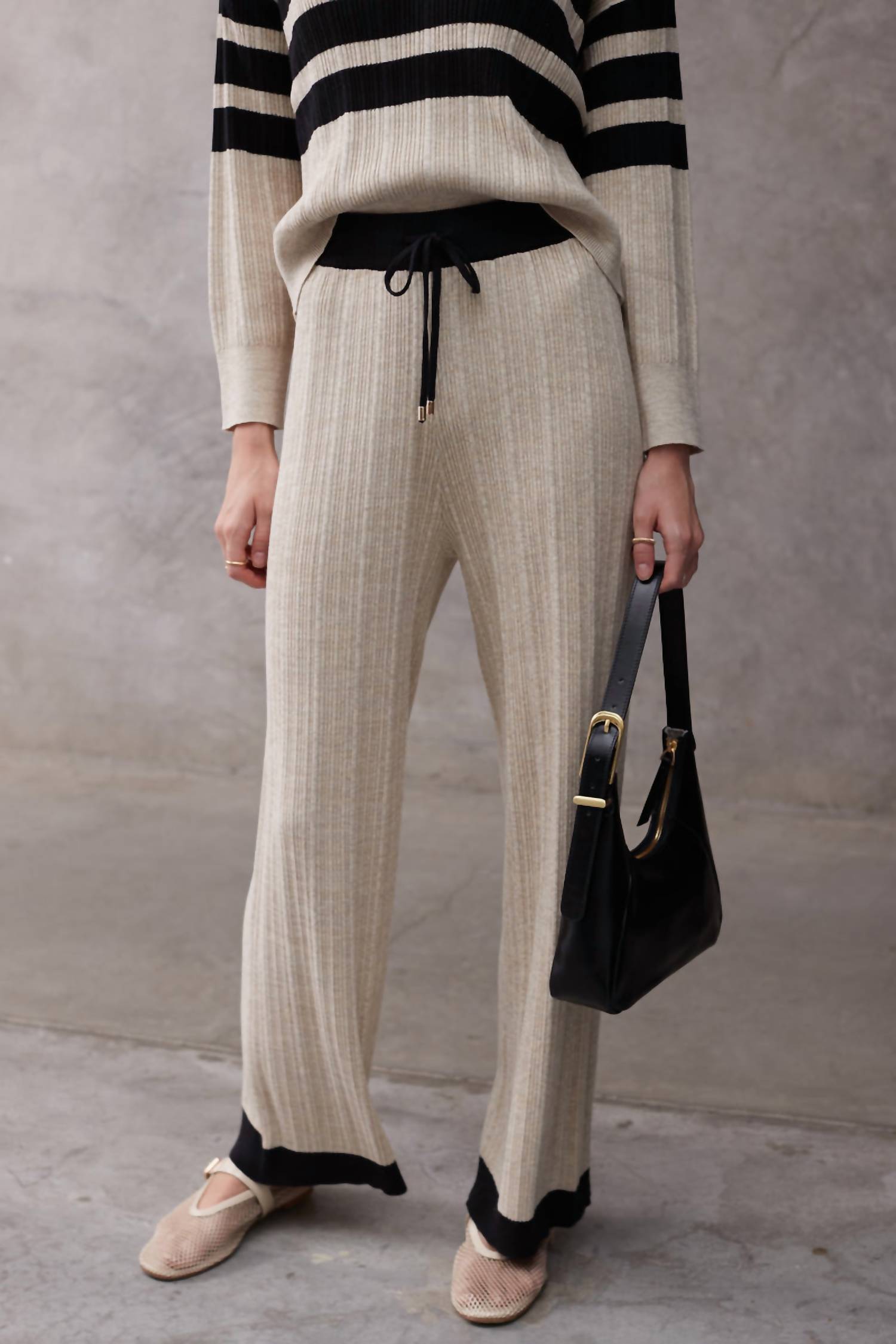 A straightleg pant that workes season after season. Dress these up with your favorite blouse or keep it casual with your go-to tee. Introducing the Sancia Cielo Knit Pants, a chic pair for the season in an almond noir hue. These wide-leg, straight-leg pants offer a relaxed fit with a high-rise elasticated waist, ensuring comfort and style. Crafted from 60% viscose and 40% cotton, this patterned piece reflects a minimalist trend perfect for a holiday party. Care: Gently machine wash cold and line dry in the shade. Closure: Pull-on.