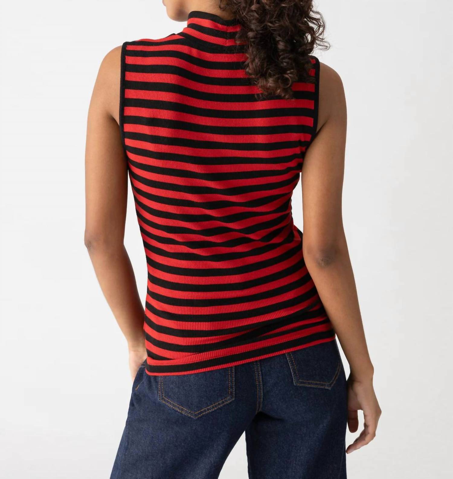Fit, fabric and functionality. This tank top checks all the boxes. Elevate your wardrobe with the Clothing Essential Sleeveless Mock Neck Tank by Sanctuary, available in a striking Black/Cherry Red Stripe. This piece features a stylish mock neckline and sleeveless design, perfect for layering. Composed of soft, lightweight stretch rib knit fabric, this fitted tank combines comfort with a modern flair. Originating from undefined locations, it offers a convenient pull-on closure and is easy to maintain with hand wash care, followed by line drying.