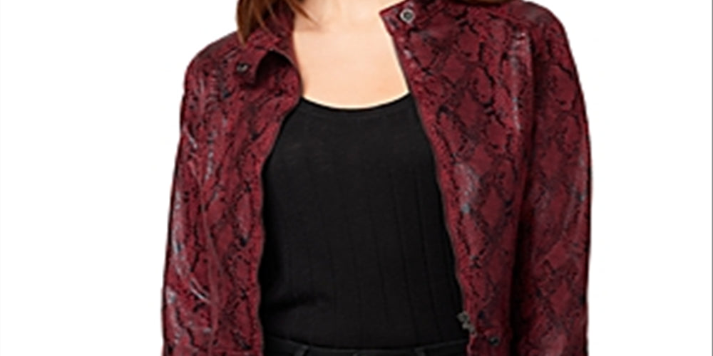 Sanctuary Women's Kori Faux Leather Snake Print Motorcycle Jacket Red Size S