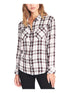 Sanctuary Women's Plaid Long Sleeve Collared Button Up Top White Size Large