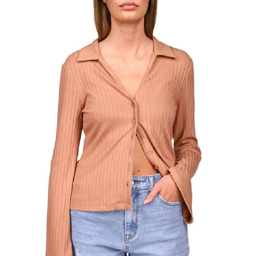 Sanctuary Women's Skimmer Ribbed Button Up Shirt Brown Size X-Large