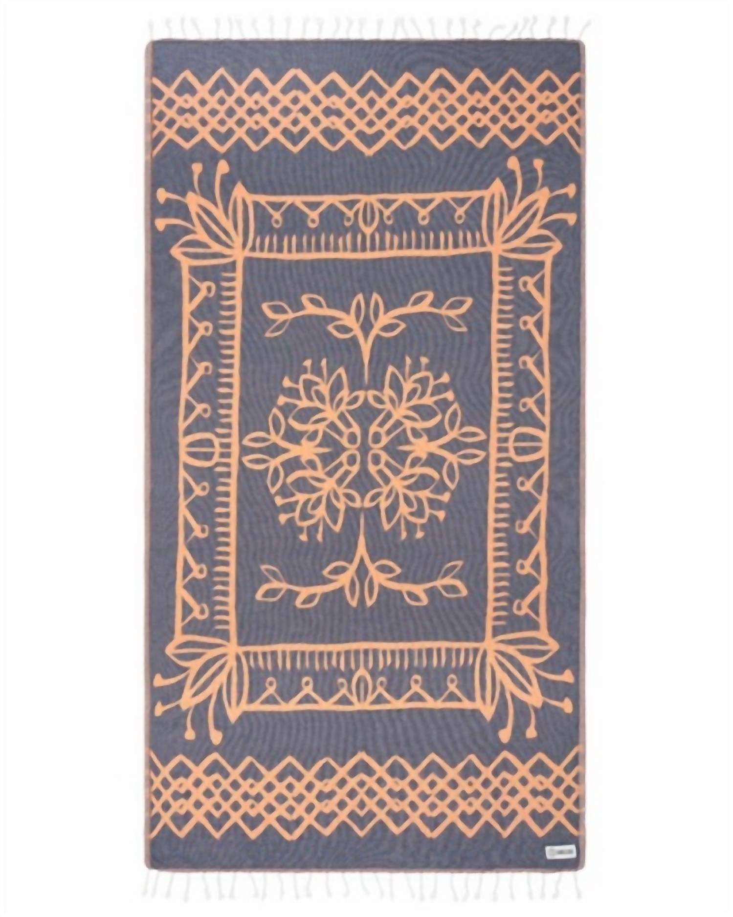 Experience the luxurious feel. Crafted in navy with a jacquard single weave and adorned with twisted tassels. Made from 100% Turkish organic cotton. Ultra-soft towel. Not only quick-drying and sand-resistant but also boasts impressive sustainability credentials. Generous dimensions of approximately 37 x 67 inches. Made and loomed in Turkey assures premium quality. Care is easy with machine wash cold and air dry instructions.