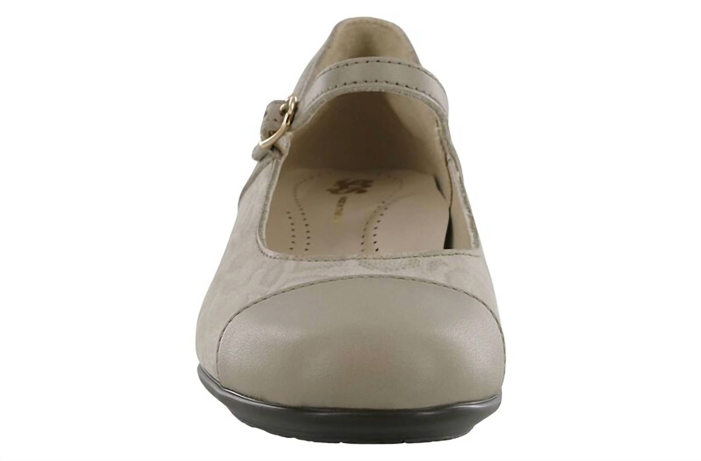 Pair these beauties with your favorite skinny jeans or dress for a night out on the town. Step into comfort and sophistication with the Women's Isabel Mary Jane Heel by SAS, crafted in taupe leather for a versatile addition to your workwear collection. This shoe features a functional Mary Jane strap and a block heel, offering a secure fit while embracing classic style. The 1.875-inch heel is complemented by TRIPAD® Technology and a removable SAS Comfort Footbed, ensuring shock absorption and support for all-day wear. Perfect for back-to-school or Thanksgiving, its round toe and stable outsole make it an ideal choice for various occasions.
