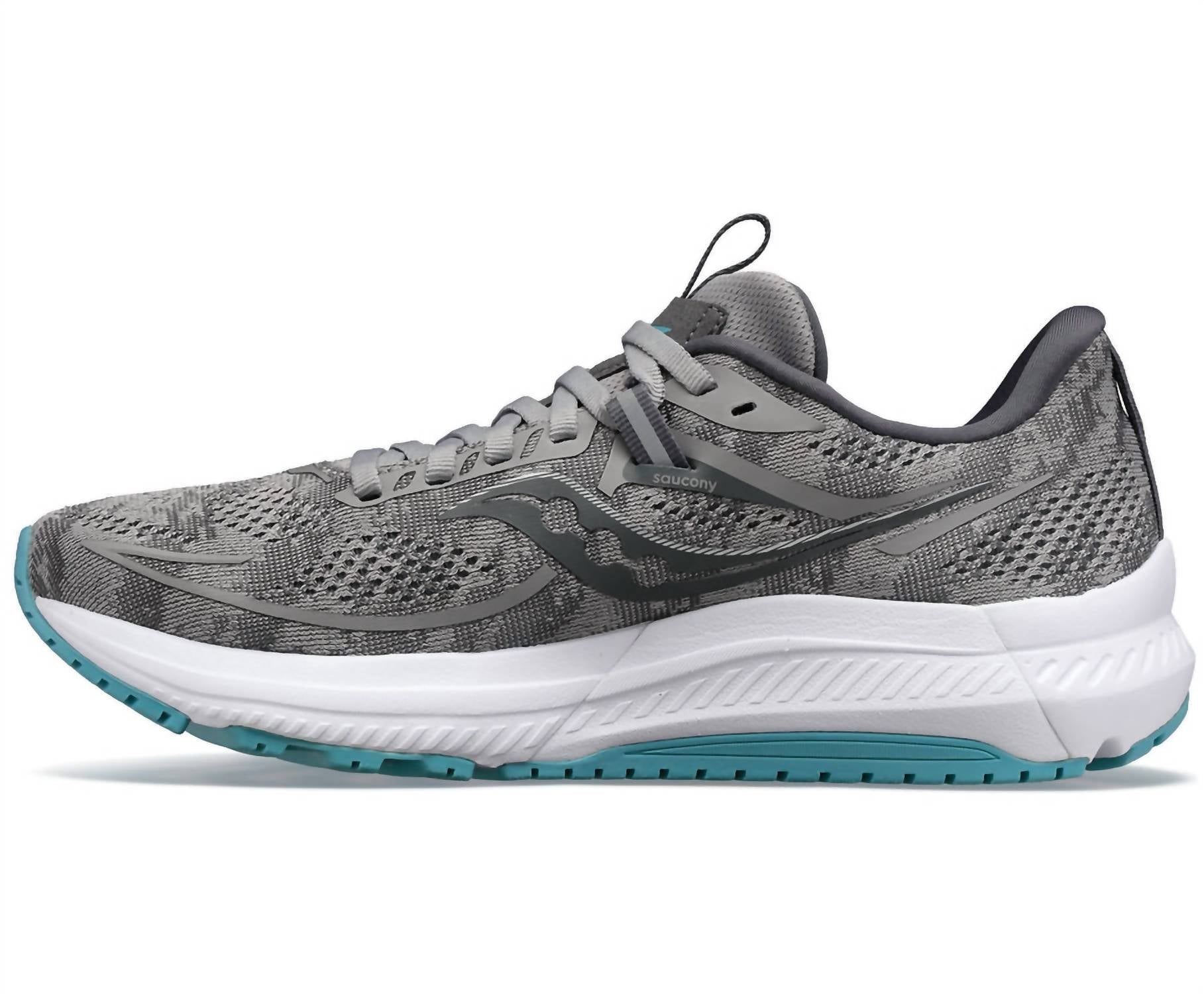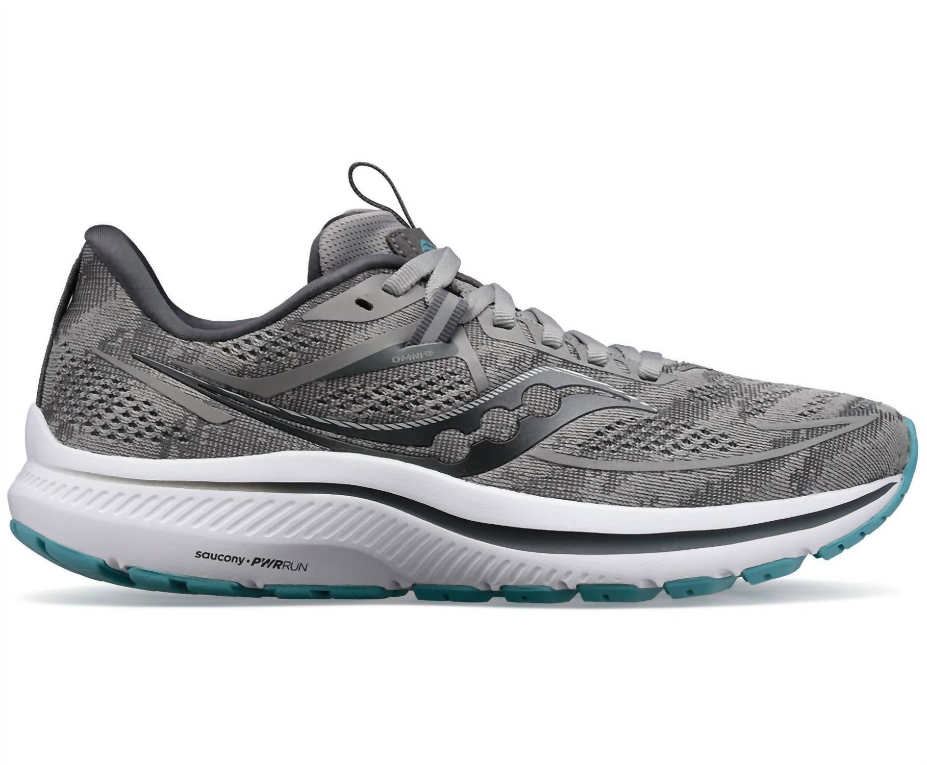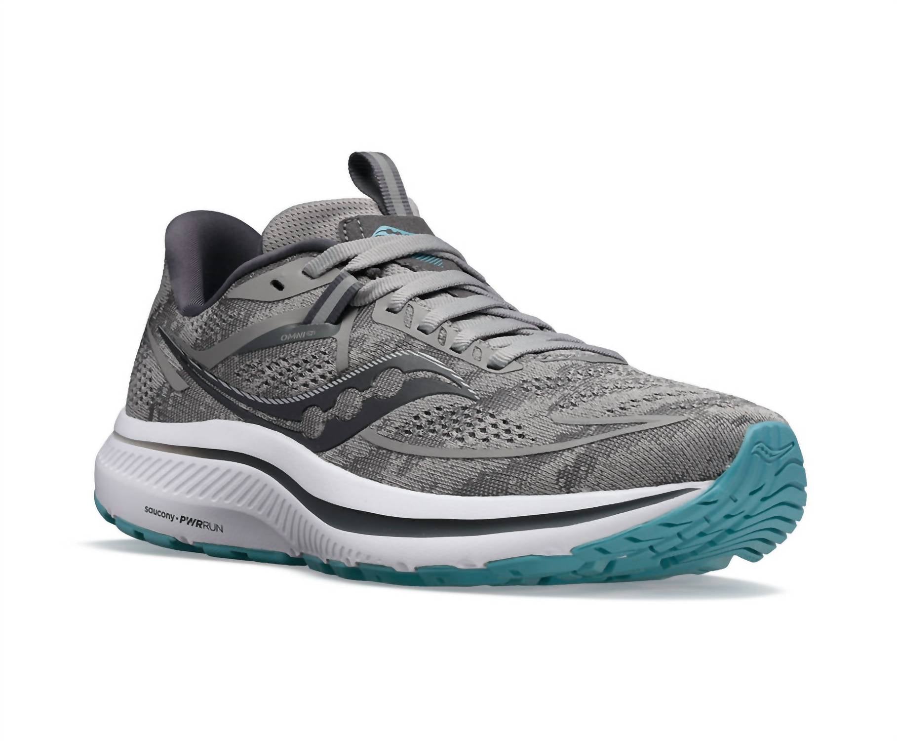 Stylish, comfortable and supportive. These athletic sneakers check all of the boxes. Step up your running game with the Women Omni 21 Running Shoes by SAUCONY, designed for adult women. These athletic shoes feature a round toe shape and come in a stylish Alloy/Rainfall color. Perfect for your active lifestyle, they combine comfort and performance seamlessly. Ideal for road running or jogging, without compromising on style.