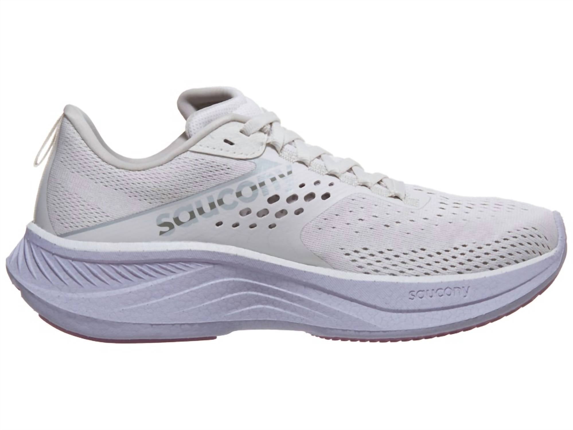 Stylish, comfortable and supportive. These athletic sneakers check all of the boxes. Introducing the Women Ride 17 Running Shoes by SAUCONY, expertly crafted for the modern athlete. This pair comes in a stylish Moon/Viola color combination and sports a comfortable round toe shape, ideal for extended runs and everyday activities. Designed specifically for women, these athletic shoes ensure optimal performance with every stride. Perfect for adults seeking both functionality and style in their sports footwear.