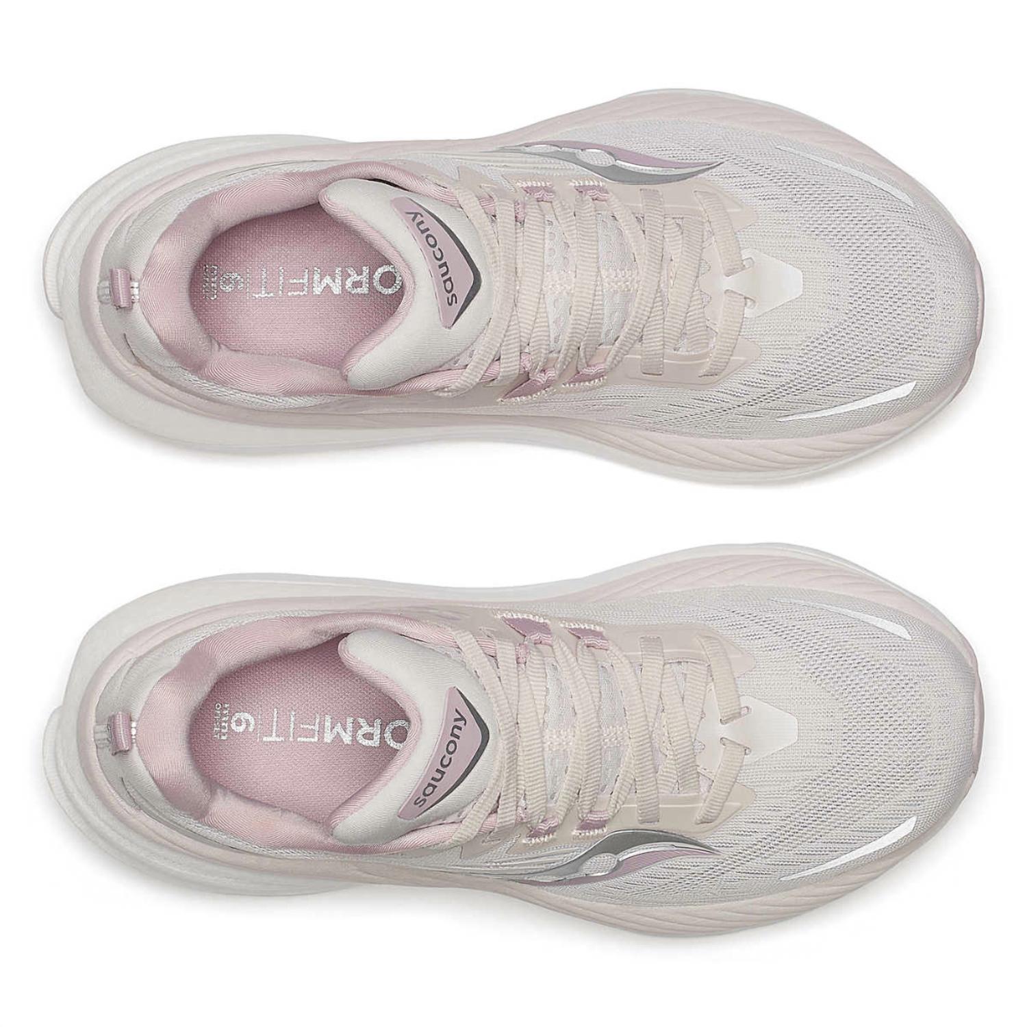 Stylish, comfortable and supportive. These athletic sneakers check all of the boxes. Introducing the Women's Hurricane 24 by SAUCONY, an athleisure favorite designed for fall fitness pursuits. These athletic shoes in a trendy Moon color feature a rubber composition for durability and comfort. The round toe shape and platform heel ensure a stylish fit ideal for workouts or outdoor runs. Crafted with precision, this pair seamlessly blends performance with style, making it perfect for your Thanksgiving season activities.