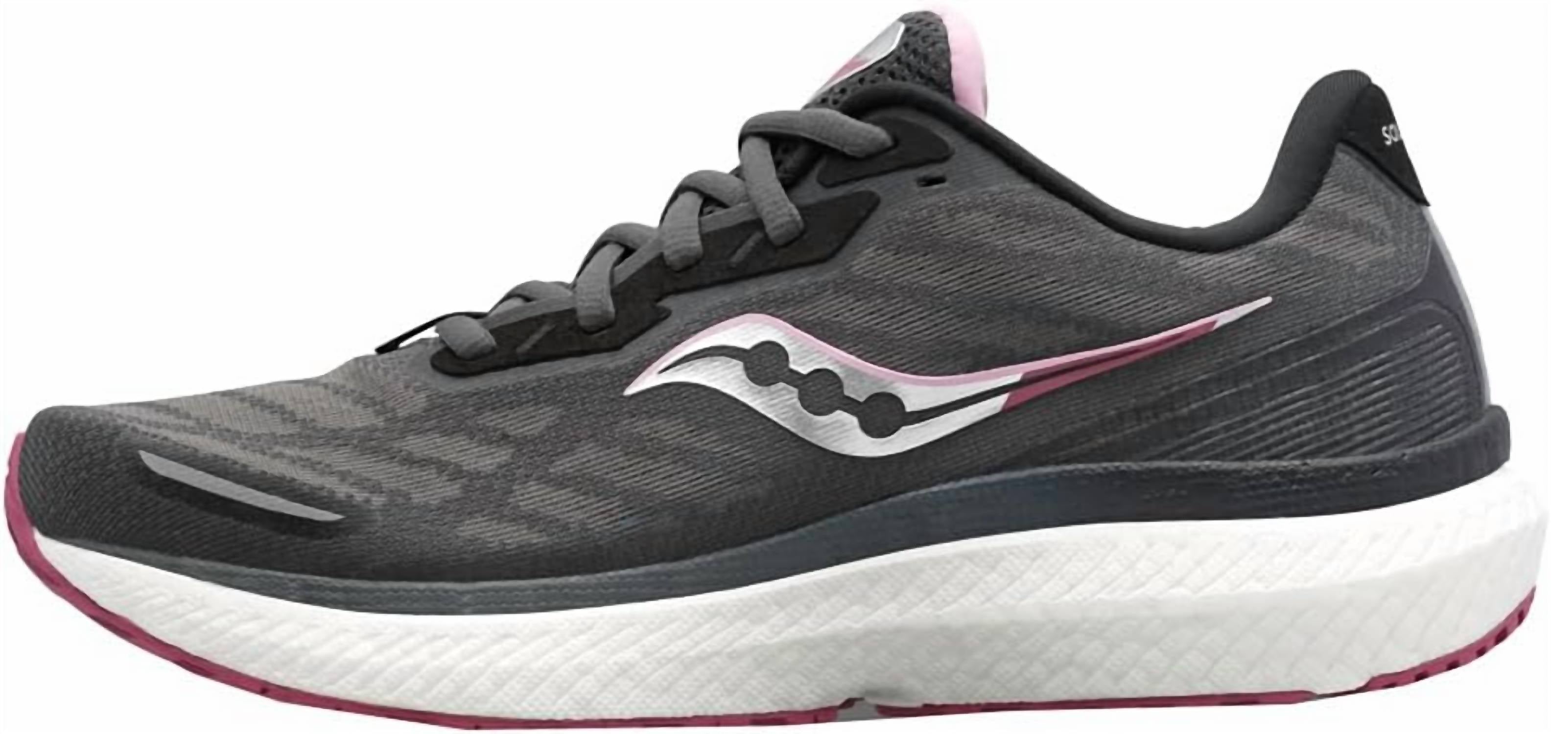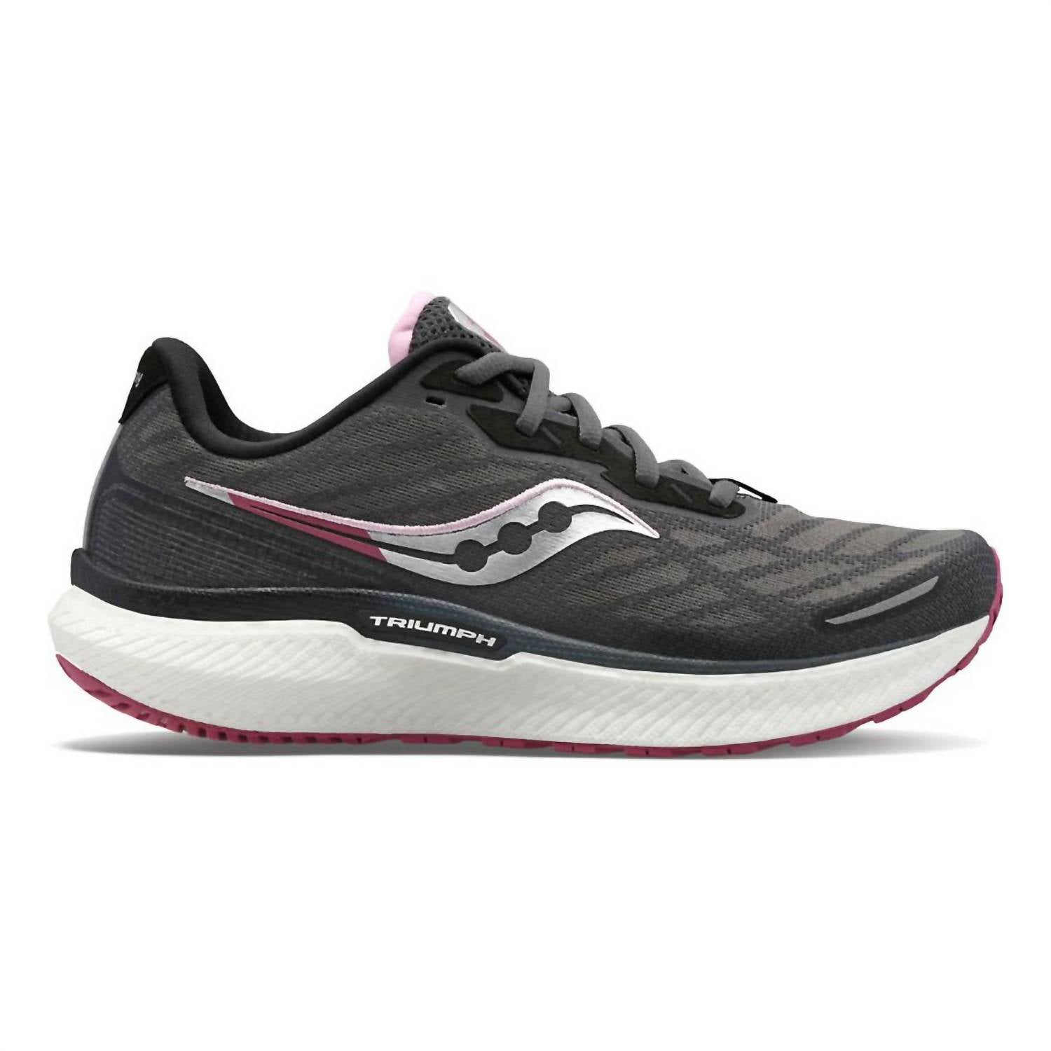 When fashion and function come together seamlessly. Experience the SAUCONY Women's Triumph 19 Running Shoes, crafted in a Shadow/Quartz colorway to elevate your fitness wardrobe. These summer-friendly sneakers feature a lightweight engineered mono-mesh upper for enhanced breathability and a personalized FORMIFIT design for a snug fit. The shoe's foundation is built with a plush PWRRUN+ cushioning system, offering exceptional softness and responsiveness, alongside a durable XT-900 outsole for a reliable grip. With a heel-to-toe offset of 8mm and weighing 9.1oz (259g) in a women's size, these athleisure trainers promise to enhance every step during your workout.