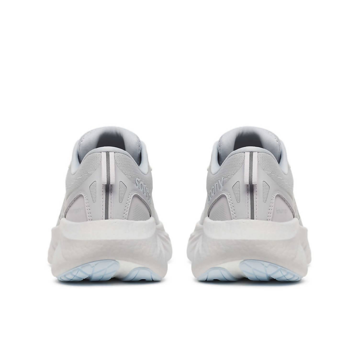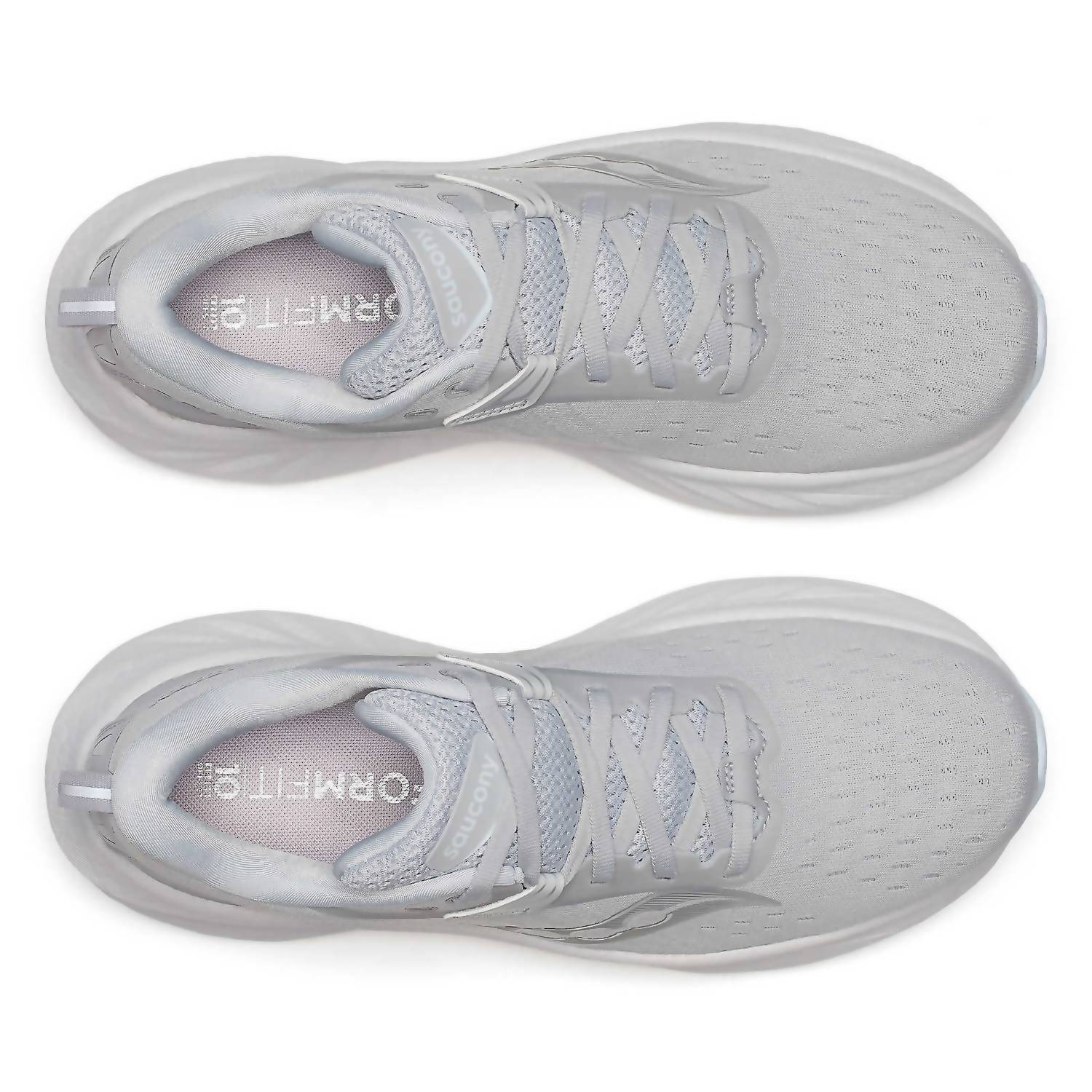 Cute, functional, and comfortable. These sneakers check all the boxes. Discover the Women's Triumph 22 Shoes by SAUCONY, designed to elevate your running experience with comfort and style. These athleisure sneakers feature PWRRUN PB foam cushioning for superior comfort and more rebound to energize every step. Weighing just 8.8oz (250g) with a 10mm offset, they offer a balanced platform and an adaptive lacing system for a secure fit, perfect for your fitness workouts. Embrace the modern Cloud color and recycled materials, making them a responsible choice for your spring sessions.