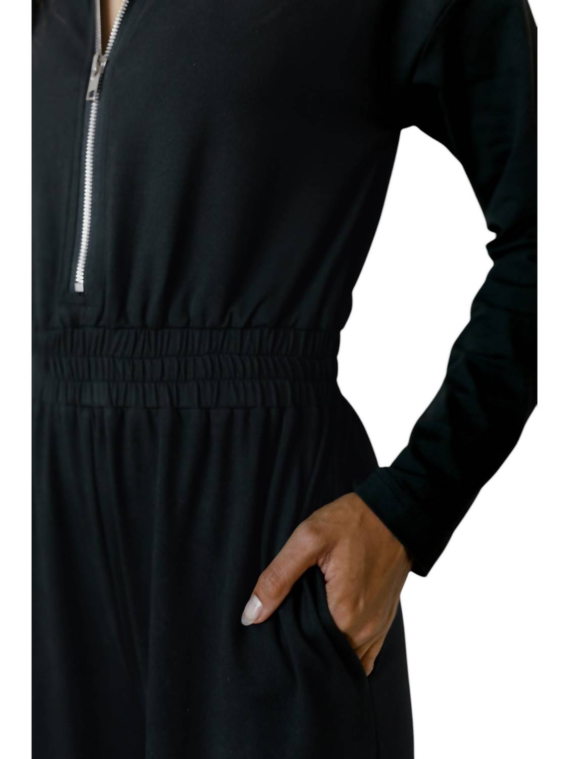 Stylish collared zip front design. Easy wide-leg silhouette for a chic, relaxed look. Made from signature brushed soft jersey fabric for ultimate comfort.