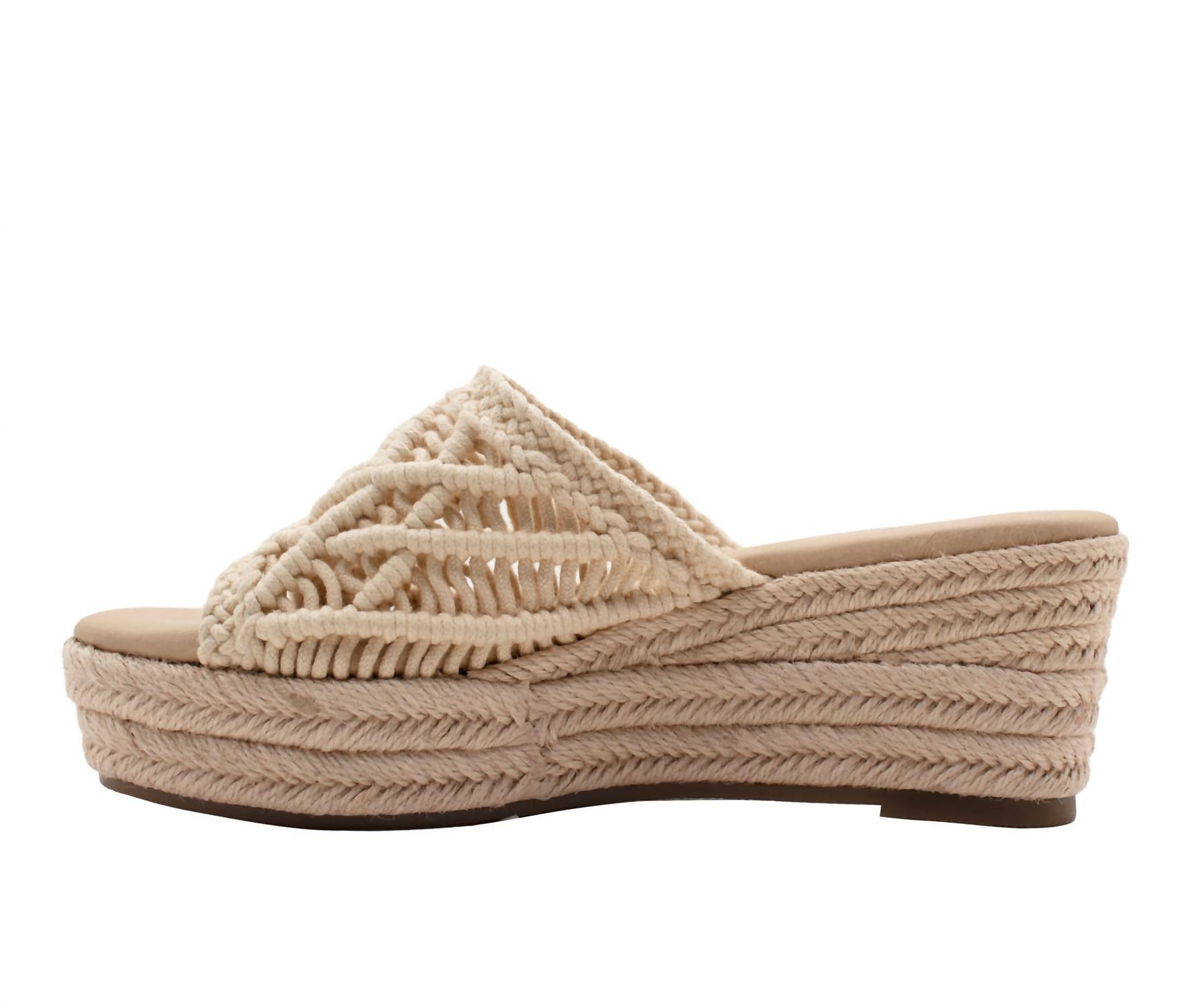 Classicly cute and all-day-wearable. We love this sandal. Step into summer with the Sbicca Women's Eureka Sandal, a boho chic essential in a natural hue. Featuring a comfortable macrame slide upper, this sandal boasts a unlined design and padded insole to ensure comfort throughout your day. The standout feature is the woven jute espadrille wedge bottom, delivering a height boost with its 2.5-inch wedge heel and 1.25-inch platform. Perfect for vacation outings, this peep toe sandal effortlessly pairs with flowy dresses or skirts.