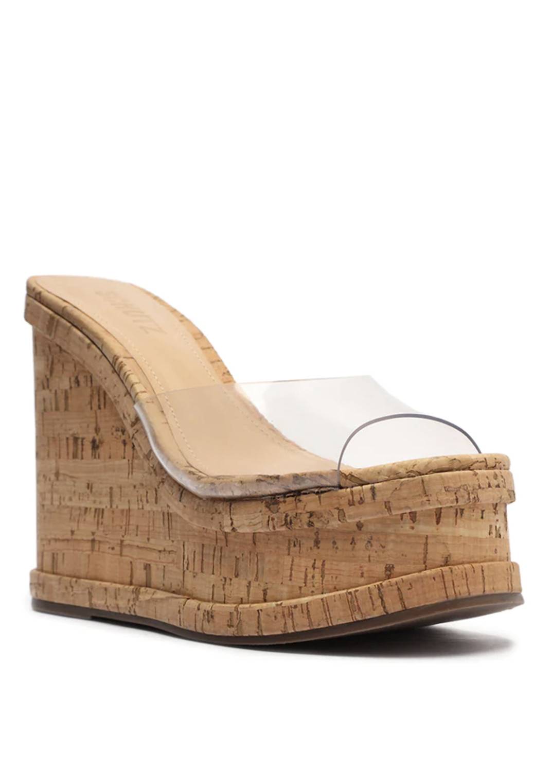 Timeless wedges that will be relevant season after season. These slip-on sandals feature a wide strap upper crafted from vinyl and a distinctive square toe, set on a towering wedge platform with a heel height of 5.3 inches (135mm) and a platform height of 50mm. The unique cork heel cover adds a touch of natural texture, while the injected outsole and TPU lining ensure comfort and durability. Proudly made in Brazil, these wedges are defined by their high heel style and playful platform, perfect for making a bold style statement.