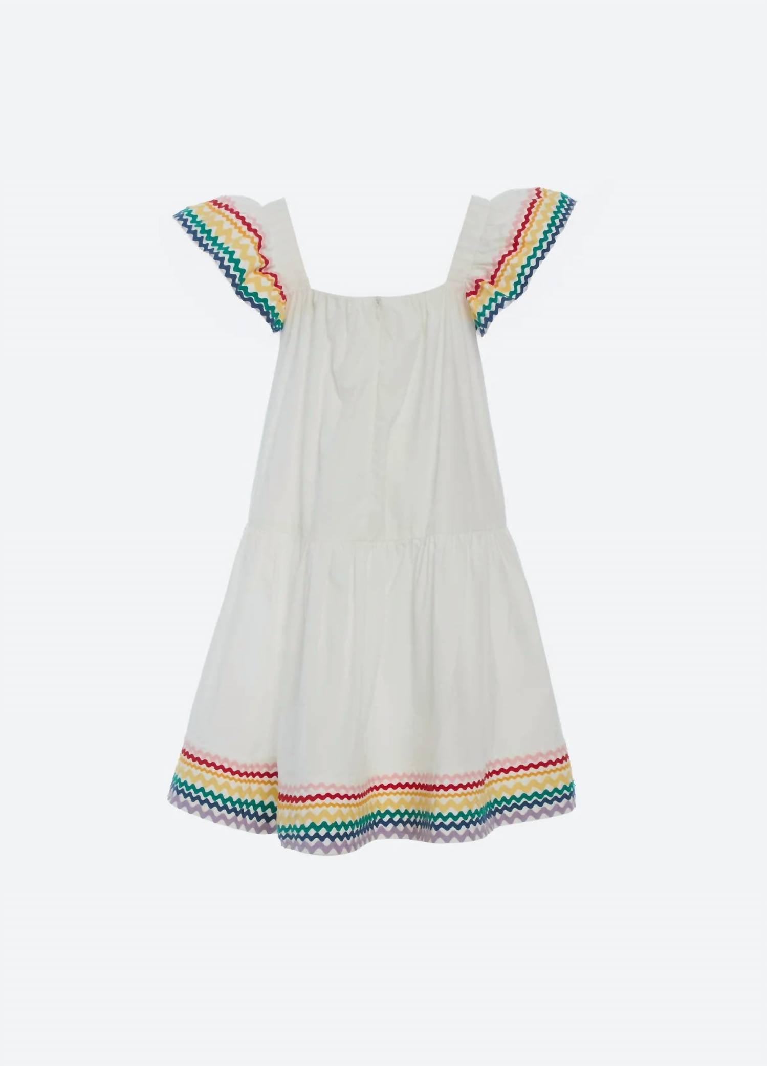 Elevate your little one's summer wardrobe with the Girl's Ria Dress by SEA, featuring playful flutter sleeves and chic ric-rac trim detailing. Crafted from 100% cotton with lace accents made of 100% polyester, this dress offers a relaxed fit ideal for casual outings or birthday celebrations. Closure: Invisible back zipper. Care: Machine wash. A delightful choice for the stylish and spirited young girl.