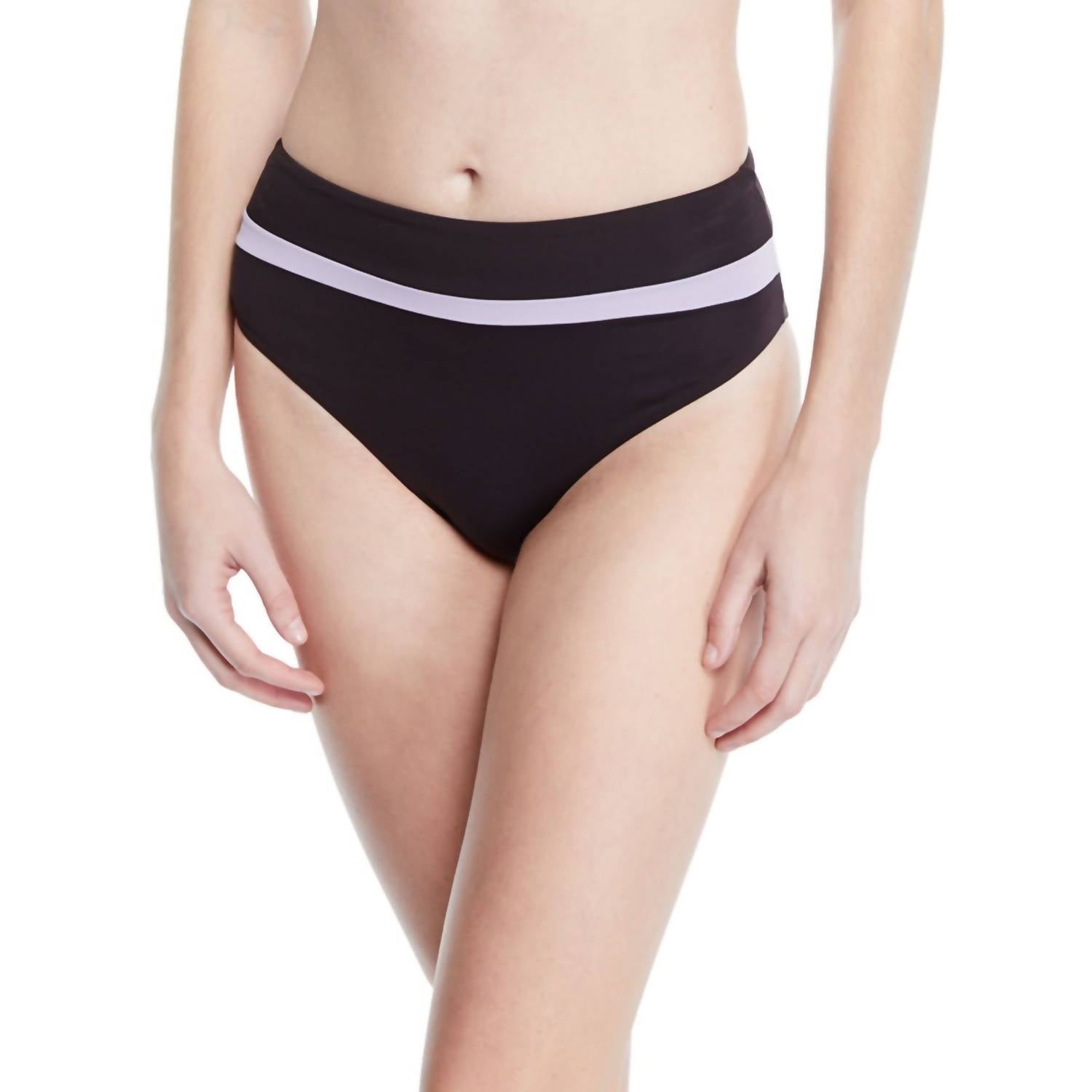 Elevate your swimwear collection with the Seafolly Color Block Multi Hi-rise Bikini Bottom. These trendy high-rise briefs feature high-cut sides for a balanced silhouette and medium coverage. Crafted from a durable nylon blend, they come in a striking Amulet Colour Block solid pattern. Ideal for a summer beach day, these swim briefs are designed to flatter and fit comfortably.
