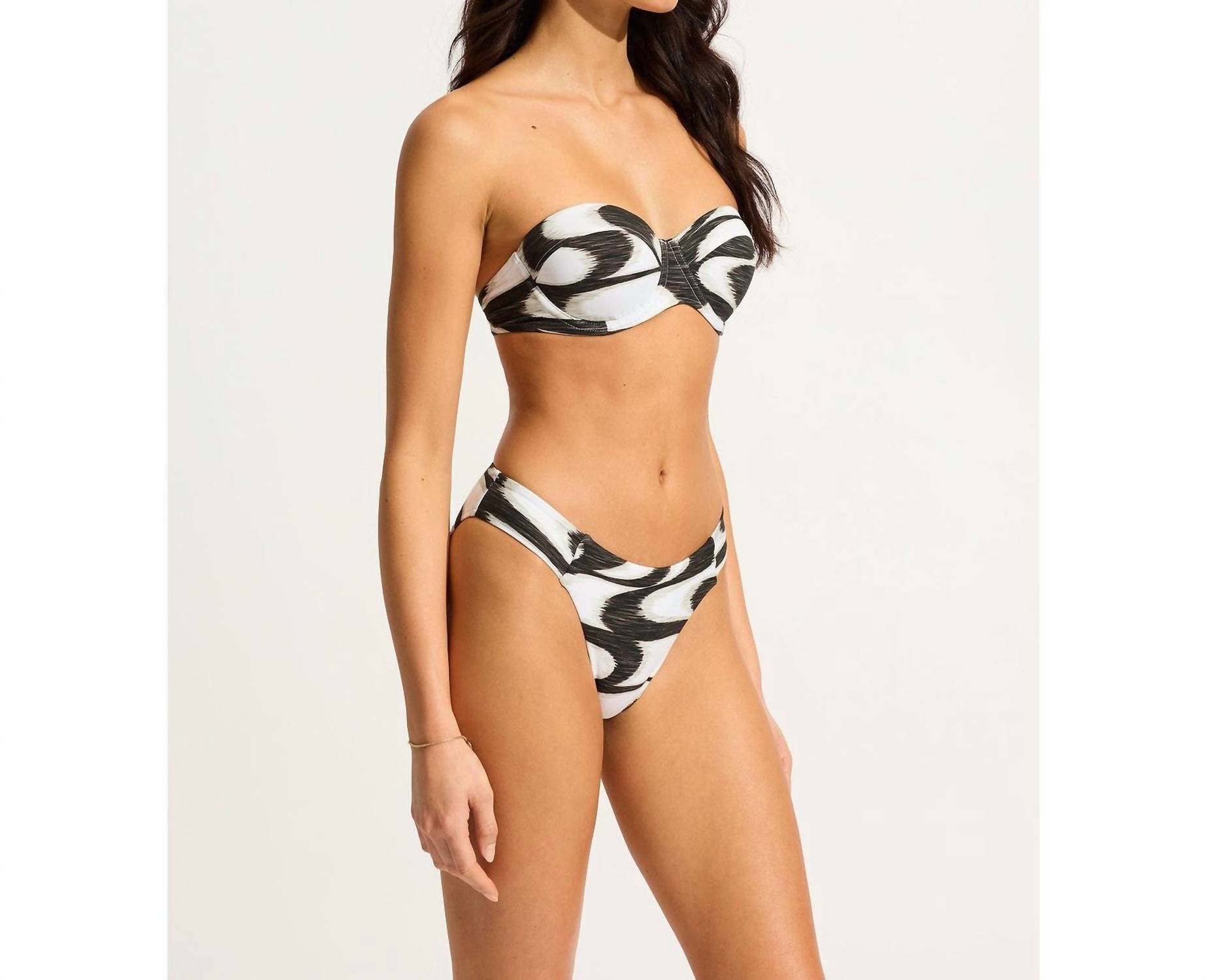Dream of your next beach getaway in this cute little number. Pair with strappy sandals, a floppy hat, and an oversized tote to complete the perfect vacation look. The Wavelength Bustier by Seafolly is a stylish bandeau swim top designed for women who seek both support and elegance. Crafted from 81% Polyester and 19% Elastane, this swim top boasts moulded cups and underwire for optimal bust support. It features gripper tape to ensure the swimsuit stays in place, with a convenient back clip closure and removable, adjustable, convertible straps for versatility. Available in a sleek black pattern, it's a must-have for any swimwear collection.