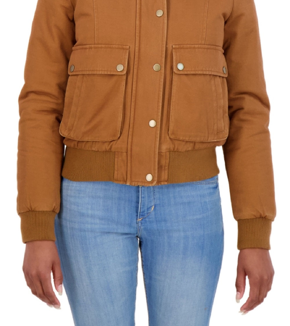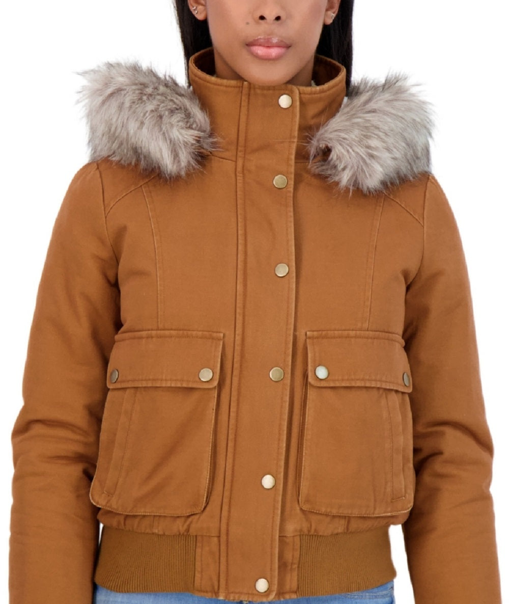 Sebby Junior's Faux Fur Trim Hooded Bomber Jacket Brown Size Medium