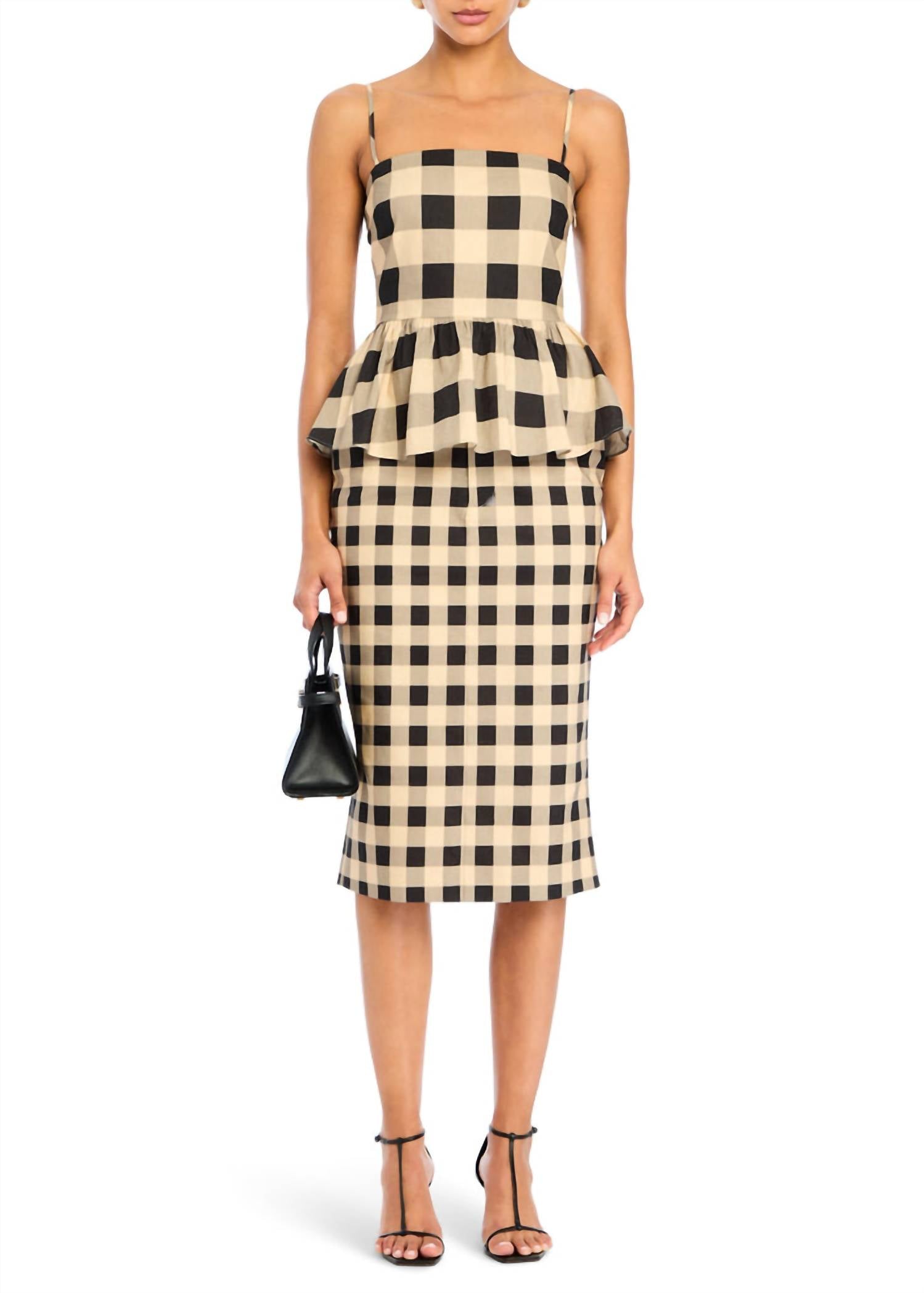 Elevate your summer wardrobe with the Ara Linen Top by SER.O.YA, presented in a striking Bold Gingham pattern. This peplum-style top features a sleek square neckline complemented by adjustable spaghetti straps, offering a flattering fit. Crafted from a linen blend (55% Linen, 45% Cotton), it boasts a side zipper closure for easy wear. Made in China, this vintage-inspired piece is perfect for a chic dinner party look.