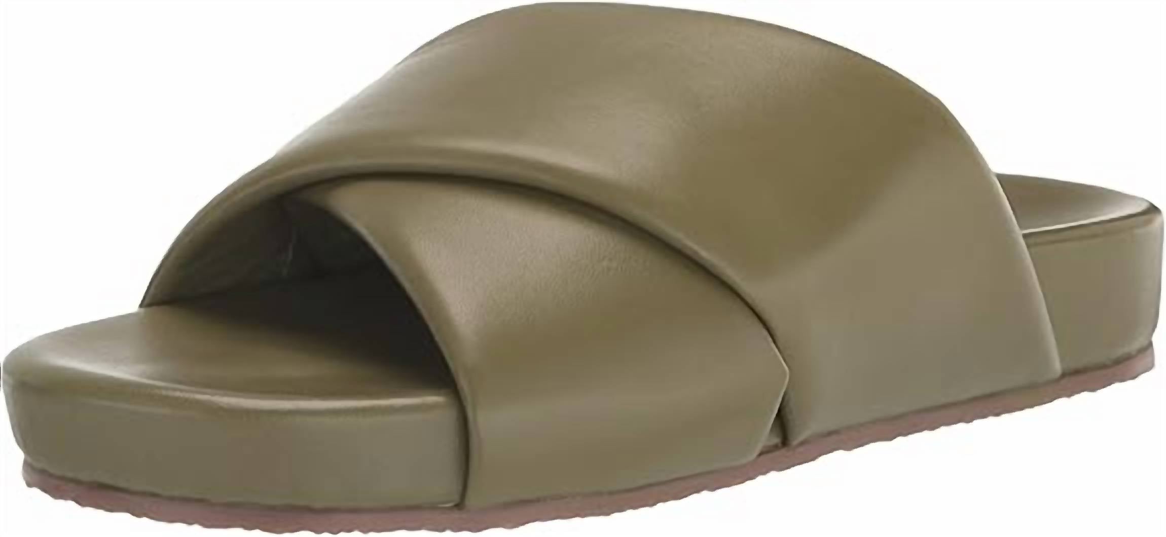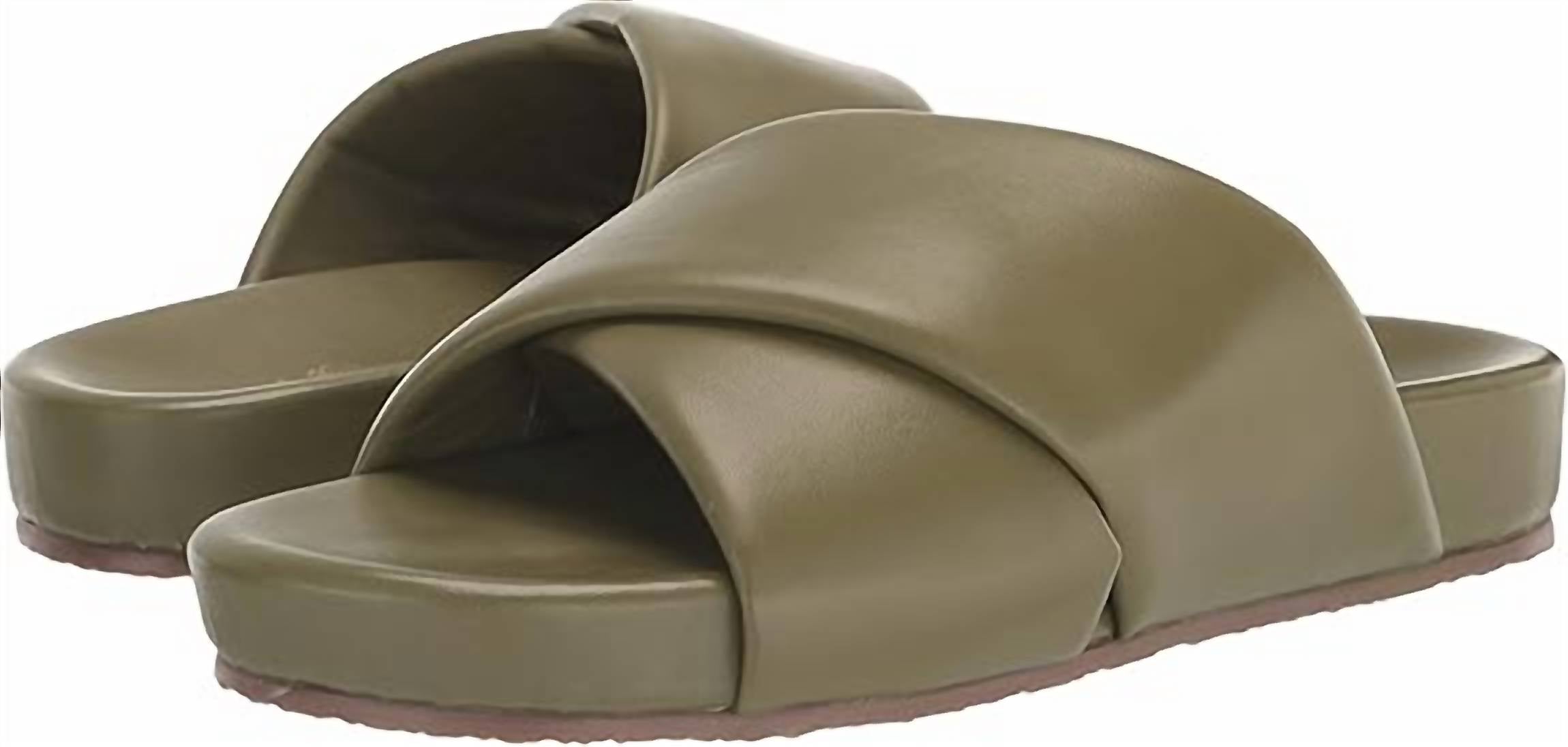 Flowy dresses, cropped pants, and even jumpsuits... this sandal works with them all! Step into comfort and style with the Seychelles Heartfelt Leather Slide Sandals in a chic olive hue. These sandals feature a leather upper with a slip-on design, perfect for effortless wear. The contoured insole provides custom foot support, ensuring softness and comfort with every step. Made with premium leather, these sandals are crafted for women who appreciate both fashion and function.
