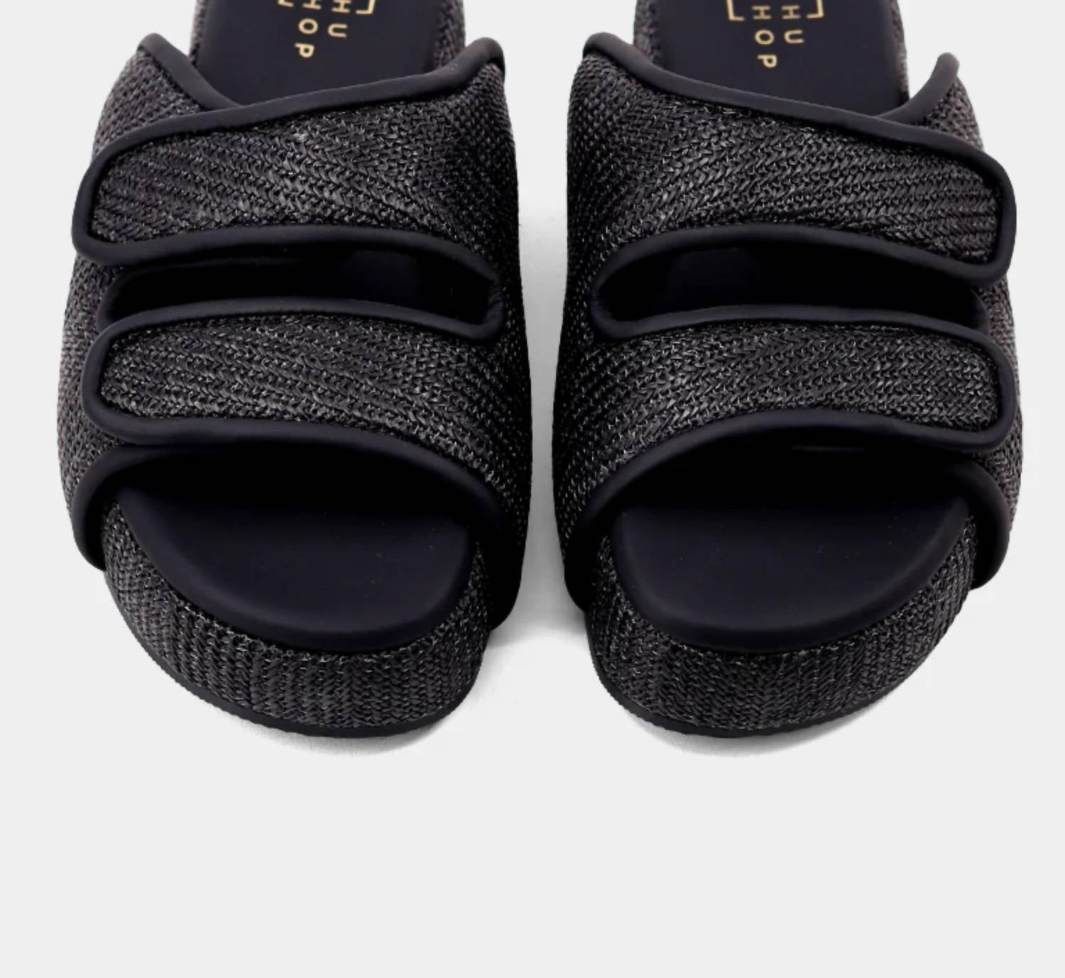Classicly cute and all-day-wearable. We love this sandal. Step into style with the Women's Lillian Wedge 2 Strap Sandals by SHU SHOP, featuring a sleek black woven texture. These sandals come with an adjustable upper for a personalized fit and cushioned footbeds for all-day comfort. The stylish wedge heel and round toe shape embrace a minimalist trend, making them perfect for various occasions, including Mother’s Day and housewarming events. A chic, versatile footwear choice ideal for elevating any look effortlessly.