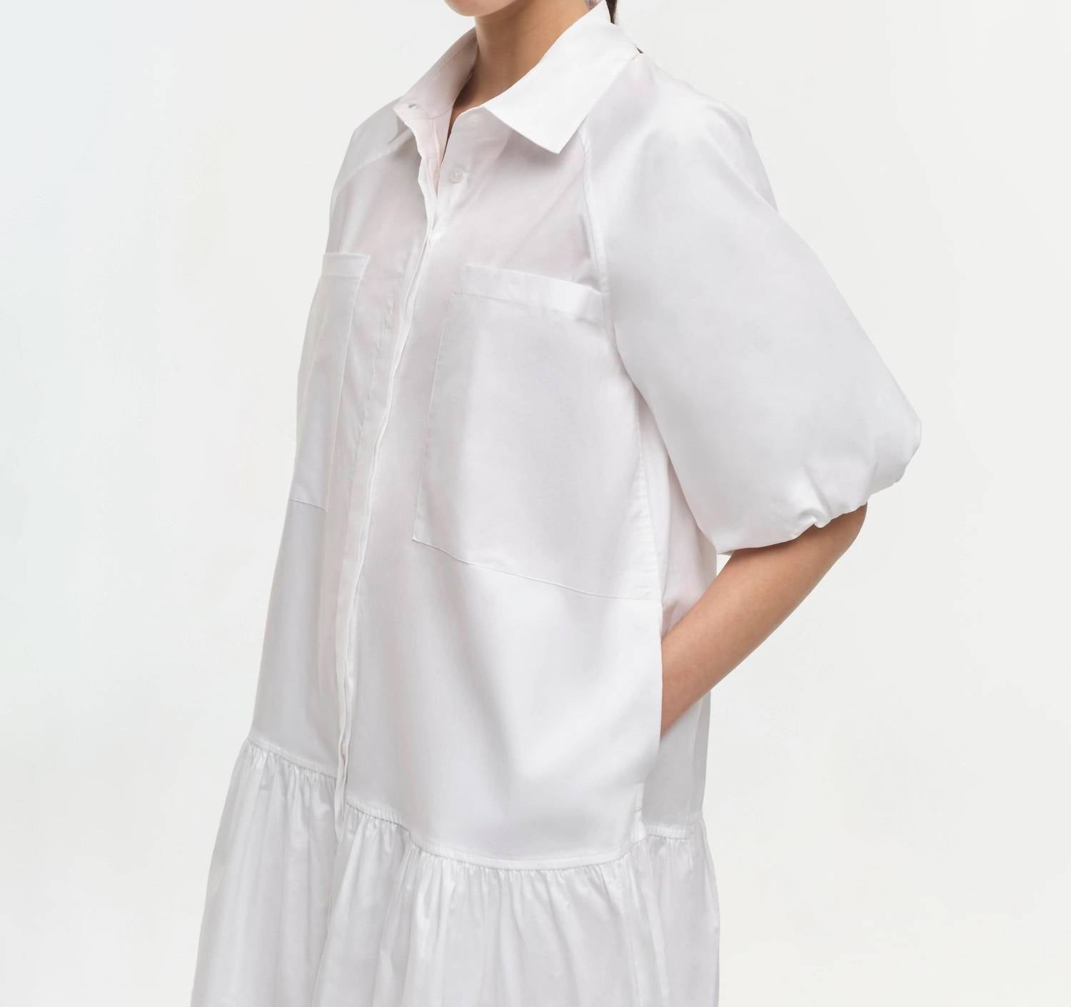 The kind of easy and flattering dress you'll be reaching for all season long. Must-have piece in a sophisticated designed for versatile wear. Featuring elbow sleeves and a solid shirting-inspired style. Combines a relaxed, puffed fit with ballooned short sleeves for added flair. Composed of Shell 97% Cotton, 3% Spandex. Button closure. Dry clean only.