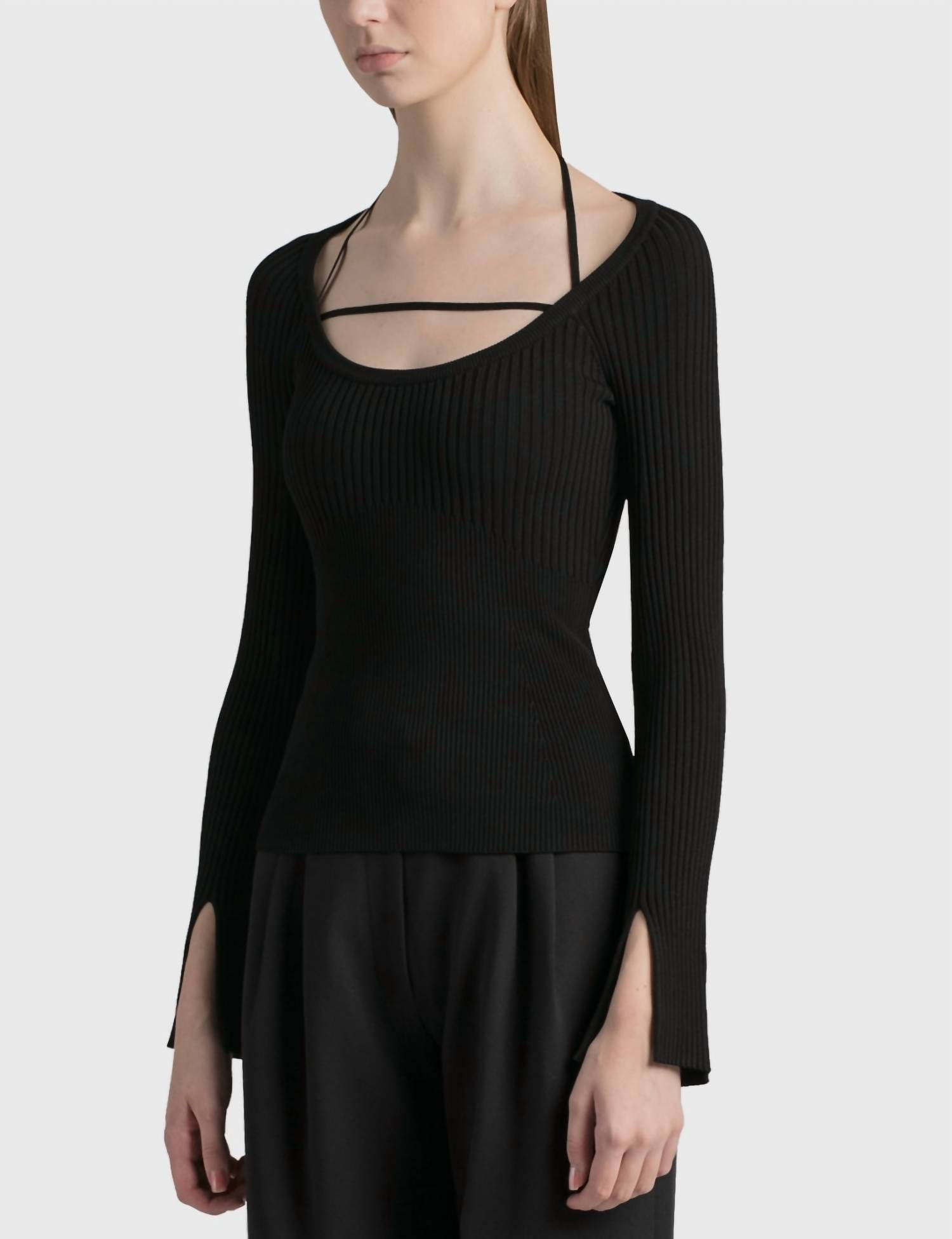 Simkhai - Minka Compact Rib Long Sleeve Halter Top
