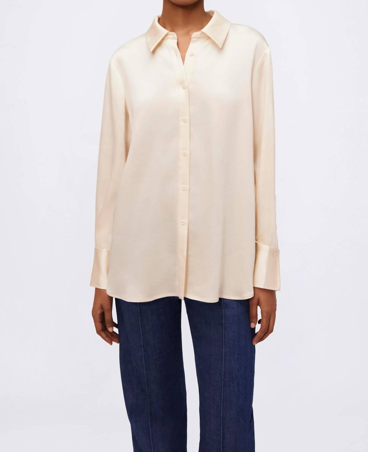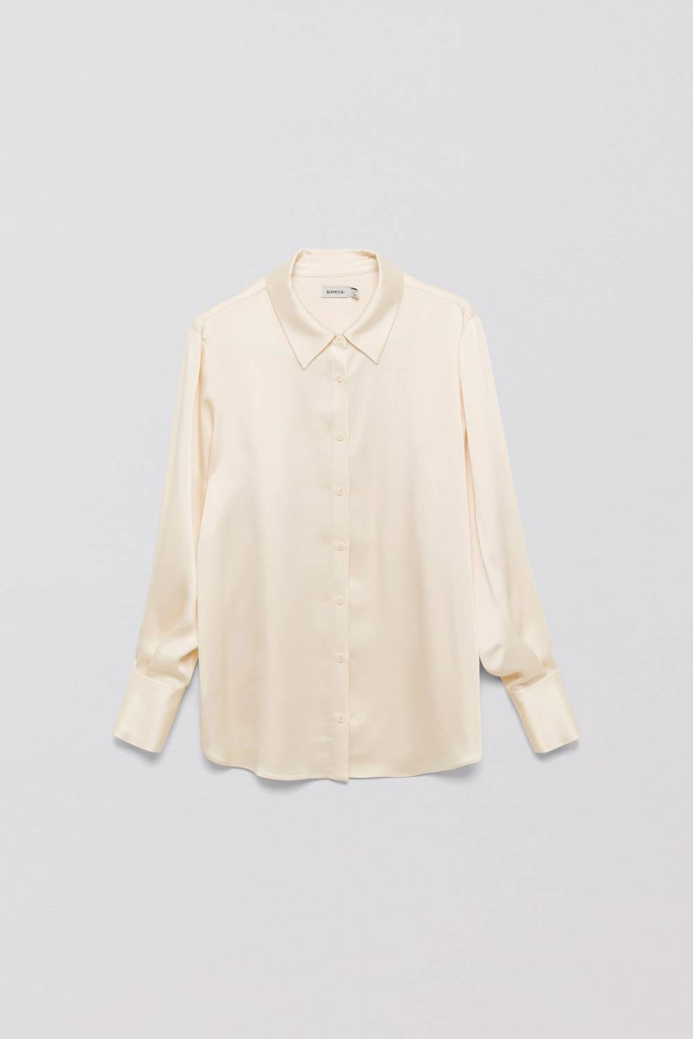 This button down shirt is comfortable yet polished. Presenting the Olsen Top by SIMKHAI, a sophisticated button-down in an elegant Ecru Map shade. This long sleeve design offers a stunning silhouette crafted from 89% Acetate and 11% Polyester. Originating from China, it features a button closure for a polished finish. Care instructions: Dry clean only. Model is wearing a size small.