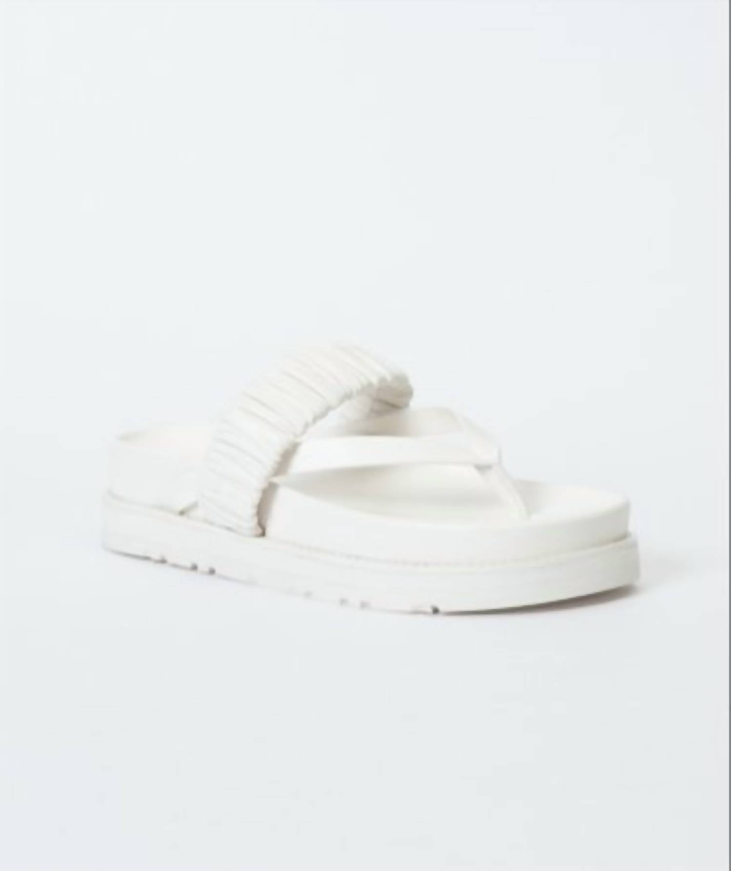 This sandal will take you from brunch to dinner and everything in between. Step into summer with the SIMKHAI Women's Ari Pool Slide, a chic sandal designed for those perfect beach days. Featuring an open toe and a stylish ruched strap across the top of the foot, this sandal combines comfort and fashion effortlessly. Ideal for a day out in the sun, it comes in the timeless colors of black and white. Enjoy a flat heel style that offers easygoing elegance for all your summer adventures.