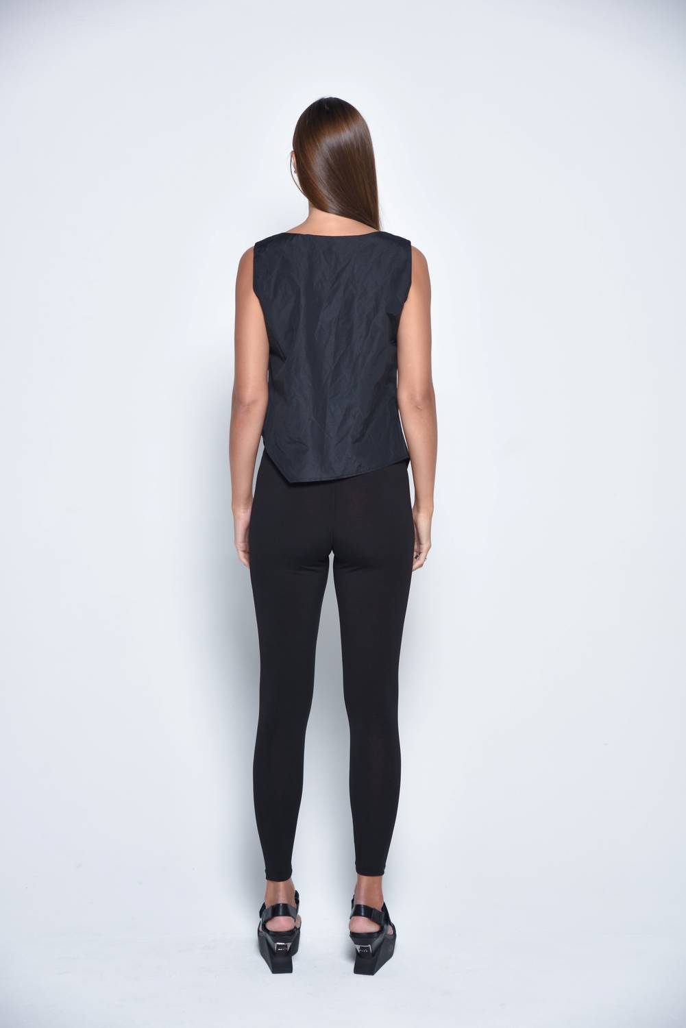 Fit, fabric and functionality. This tank top checks all the boxes. Introducing the Simply Mila Uneven Hem Tank in classic black, tailored for modern elegance and a touch of quiet luxury. This sleeveless, scoopneck top boasts a dynamic asymmetrical hemline for a statement look ideal for a summer dinner party. Made in the USA with a composition of Cotton, Polyester, and Metallic Thread, it delivers both style and comfort. Closure: Pull on. Care: Machine wash cold on a delicate cycle, inside out, air dry, and cool iron if needed. With sizes ranging from XS to XL, the front and back lengths vary between 27" to 30" and 22" to 24", respectively.
