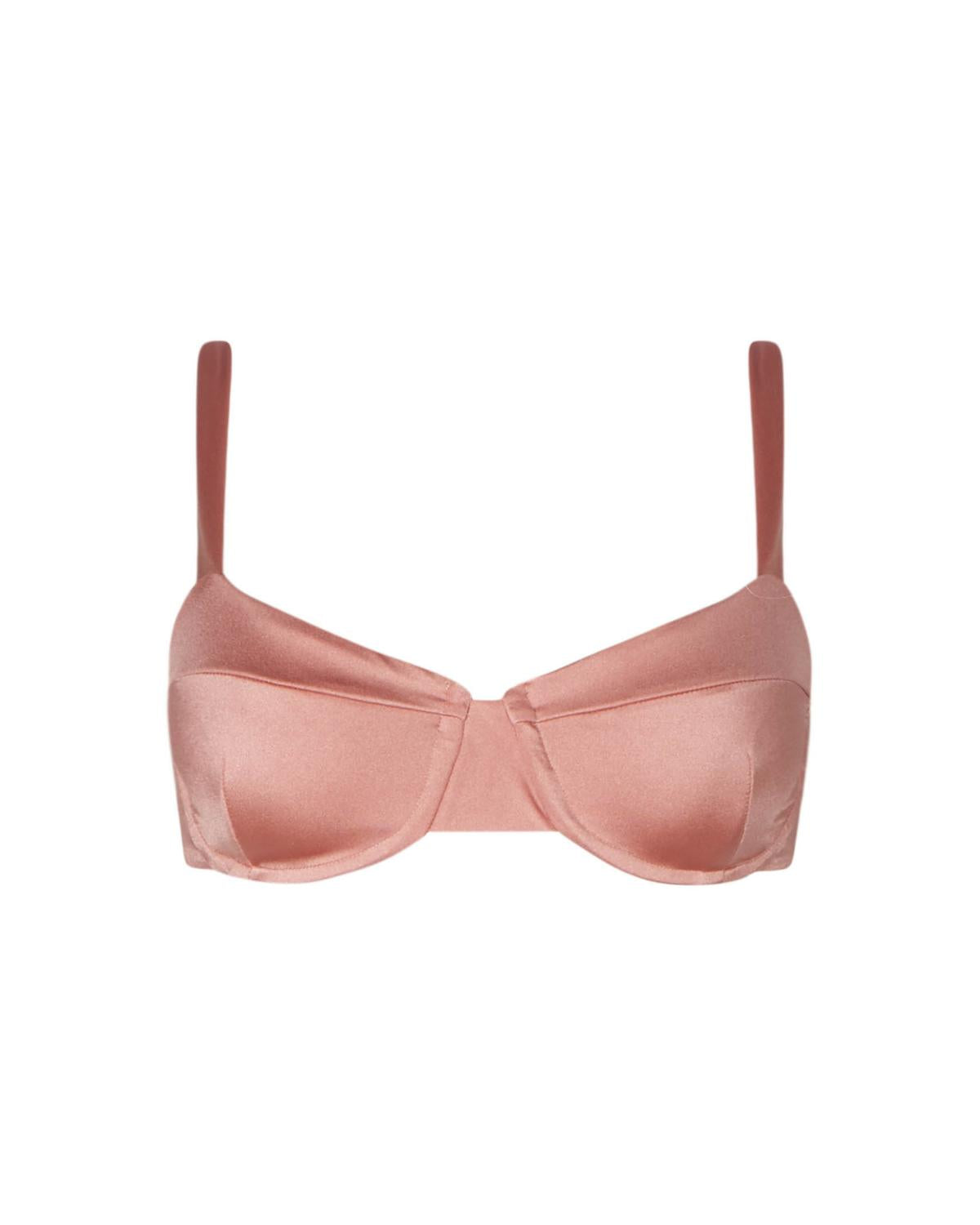 This cute and flattering swimsuit is perfect for making a splash at the pool, lounging on sun-kissed beaches, and staying stylish throughout the upcoming summer season. Meet the Women's Stella Bustier Top by SOAH, designed for those glamorous summer beach days. Showcasing a chic underwire style with a solid metallic rose color, this swim top features thick shoulder straps for a secure fit. Crafted with a slightly structured design, it includes an adjustable back closure for customized support. Please note this item is sold individually, not as a set.