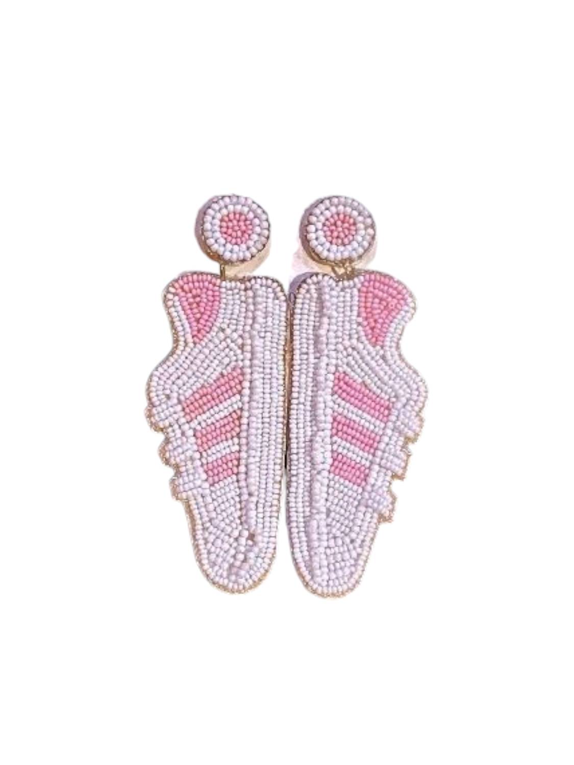 eye-catching earrings for every occasion. Add a touch of sporty charm to your look with the Women's Seed Bead Sneaker Statement Earrings by Sophia Collection. These earrings feature a playful design with pink and white seed beads, crafted in a light and comfortable form that's perfect for all-day wear. Measuring 2.5 inches long, they bring a dash of fun and whimsy to any ensemble, making them a must-have for sneaker enthusiasts. Elevate your accessory lineup with this fashionable and delightful piece.