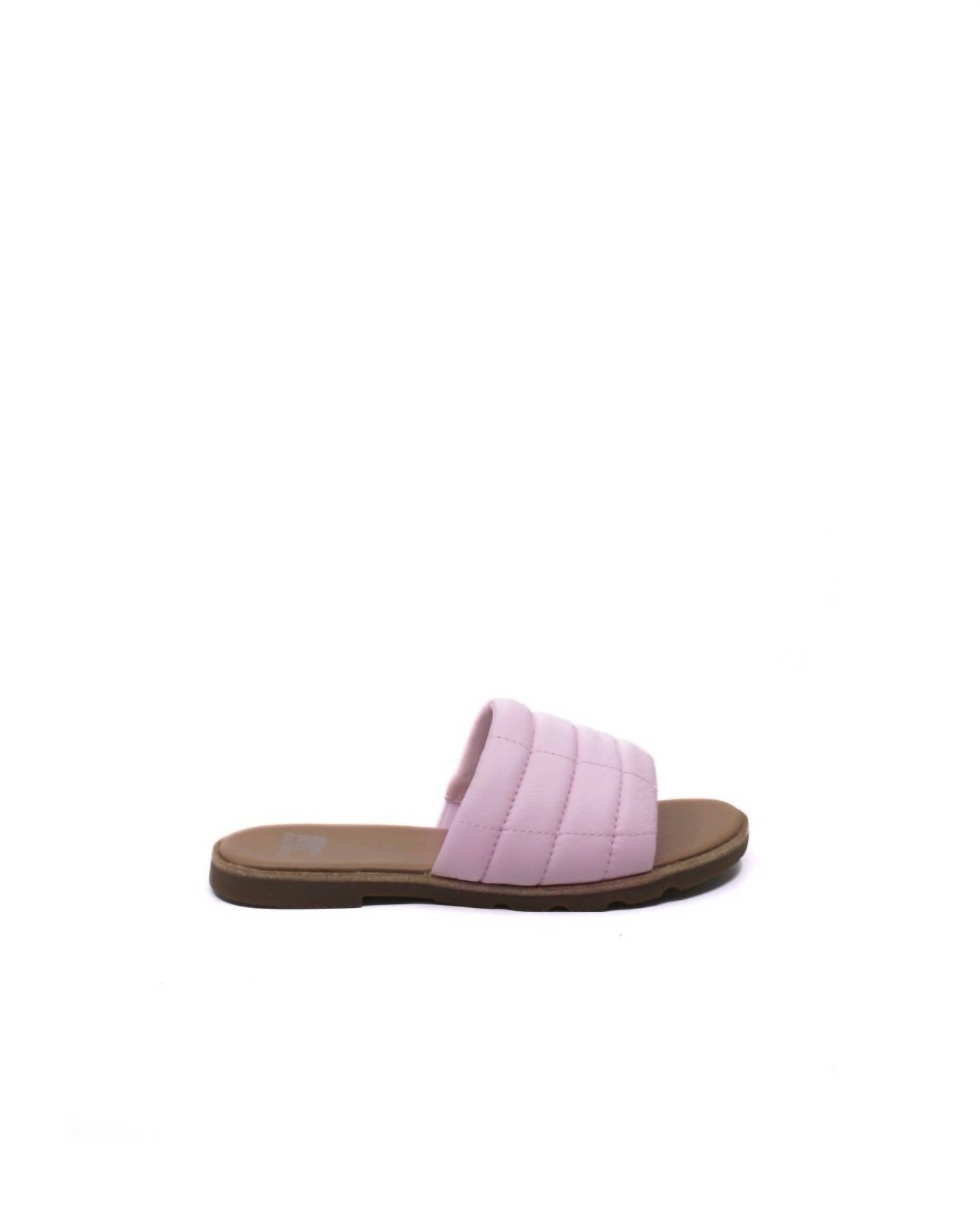 Flowy dresses, cropped pants, and even jumpsuits... this sandal works with them all!Perfect combination of style and comfort. Crafted with lightweight quilted puff leather. Heel offers a subtle lift. Quilted puff leather upper. Gore cookie on medial side for adjustability. PU-like EVA foam footbed construction and synthetic topcover. Rubber cupsole construction with reverse bob SOREL DNA. 3/4 in. Platform height.