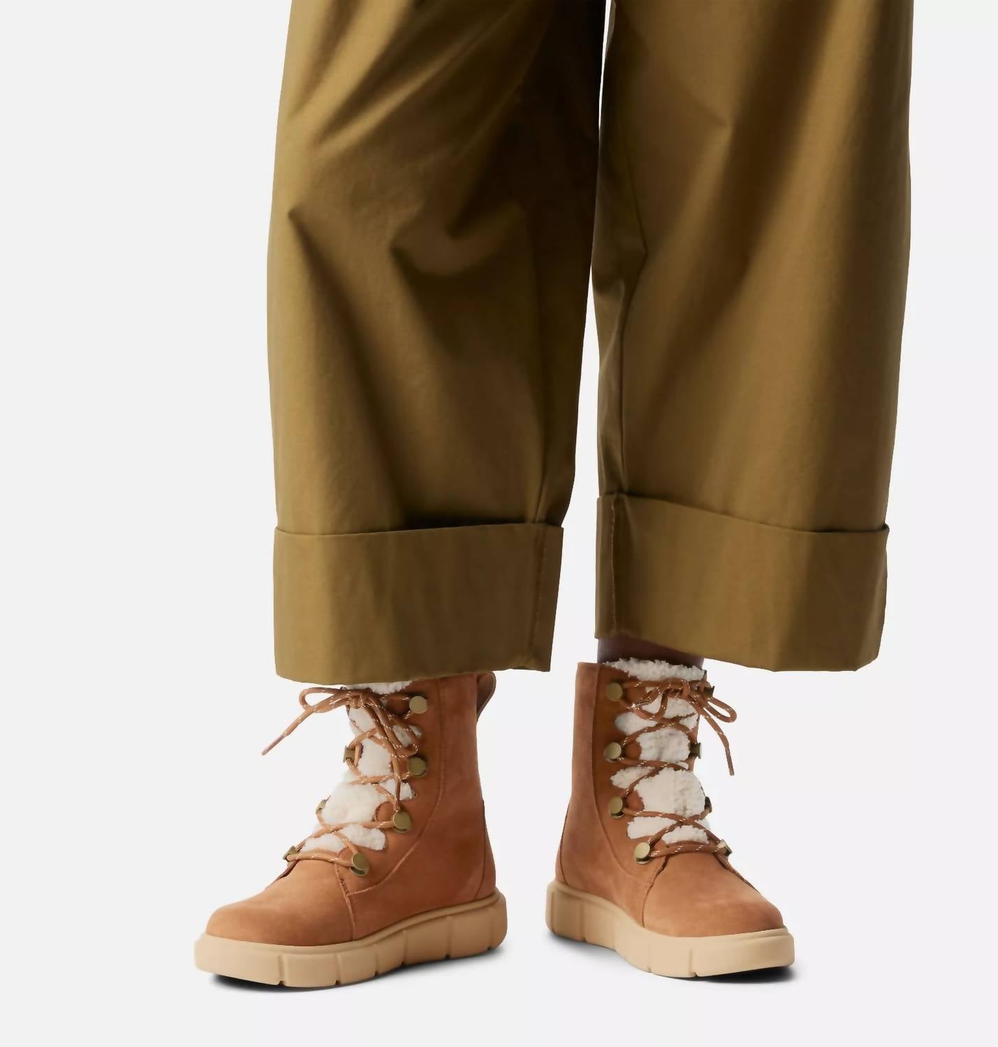 Say hello to the perfect, most versatile boot. The ankle height makes this style easily transition from day to night. Wear them with your favorite skinny jeans and tee for a more laid back look, or pair them with your favorite mini dress and jacket for a night out on the town. Elevate your footwear collection with the SOREL Women's Explorer III Joan Cozy Waterproof Boots in Velvet Tan, perfect for any fall adventure. Crafted from waterproof suede with a faux shearling tongue, these boots feature a 6 1/4-inch shaft height and a reliable tread with molded DUOTREAD™ rubber pods. Insulated with 100g and equipped with a molded EVA midsole and footbed, they ensure all-day comfort and warmth. Care: Imported. These boots offer a flat heel style, making them ideal for boho-chic trends and versatile occasions like dinner parties.