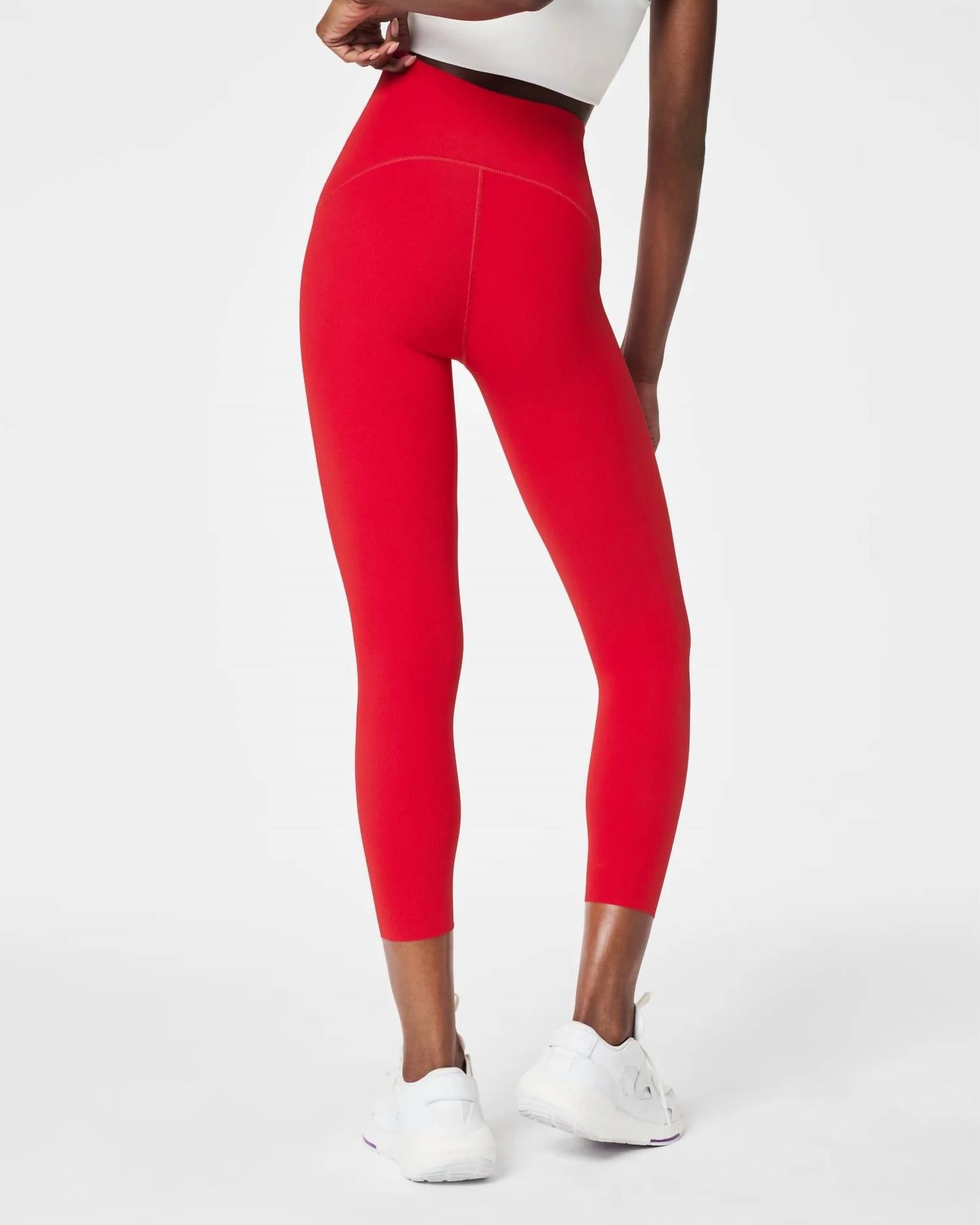 The legging you didn't know you needed and you won't want to take off. Enhance your workout wardrobe with the Spanx Booty Boost Leggings in a striking red hue. These solid color leggings feature a relaxed fit and high-rise waist for optimum comfort and style. Designed with a pull-on closure, these leggings are practical and easy to wear. Care for them is a breeze: simply machine wash and tumble dry. With a 25.5-inch inseam, they offer the perfect fit for active women.