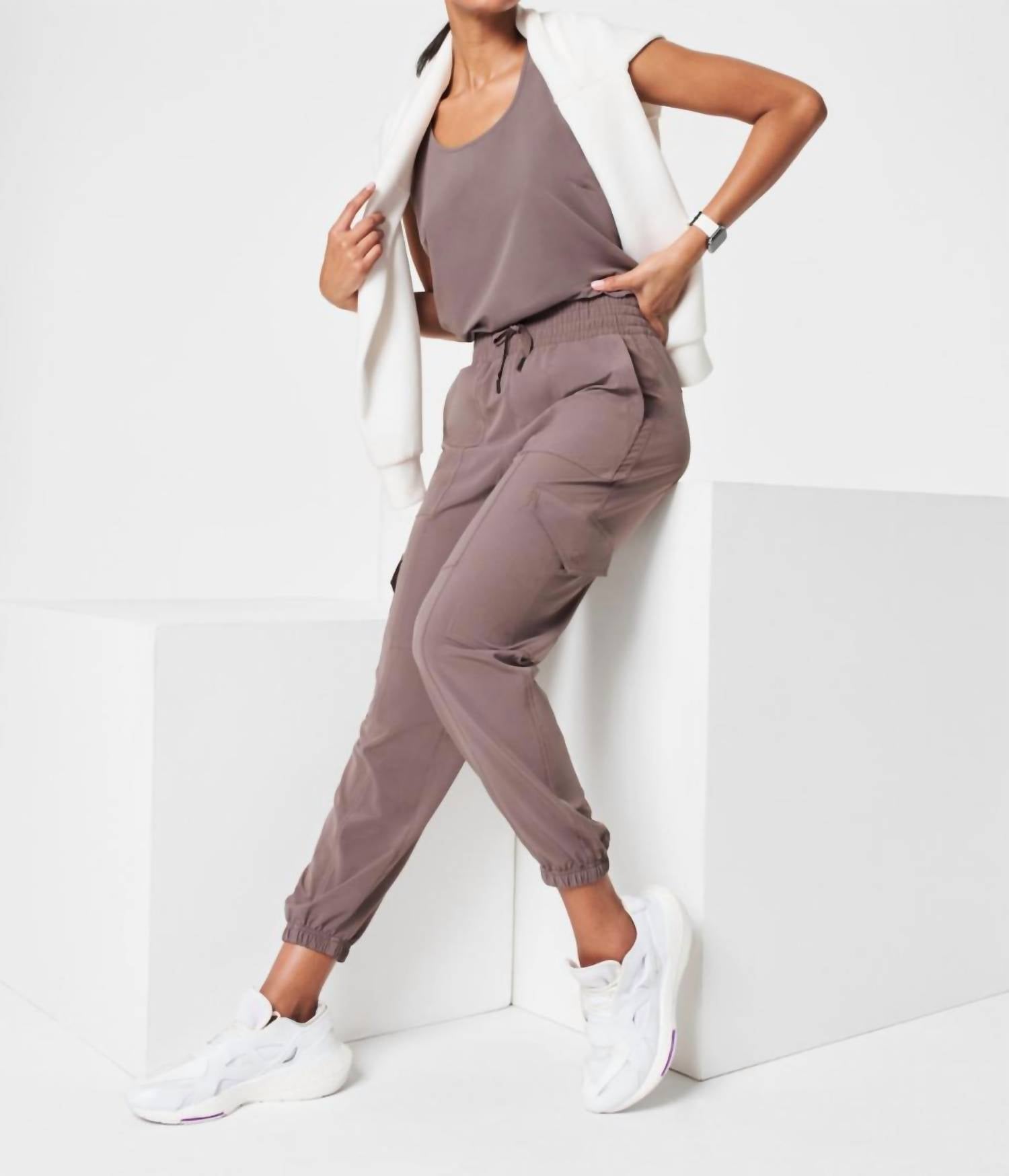 The perfect pant for running around town and looking cool while doing it. Experience the Casual Fridays Cargo Jogger by Spanx in a chic smoke color, perfect for your active lifestyle. These high-rise joggers feature a flattering flat front waistband with a pull-on closure, functional front pockets with hidden snaps, and an elastic cuff for a secure fit. Crafted from 88% polyester and 12% elastane, they offer sweat-wicking properties and a 4-way stretch with a relaxed, tapered leg fit. Care is hassle-free with machine wash and tumble dry instructions, ideal for women seeking comfort and style.