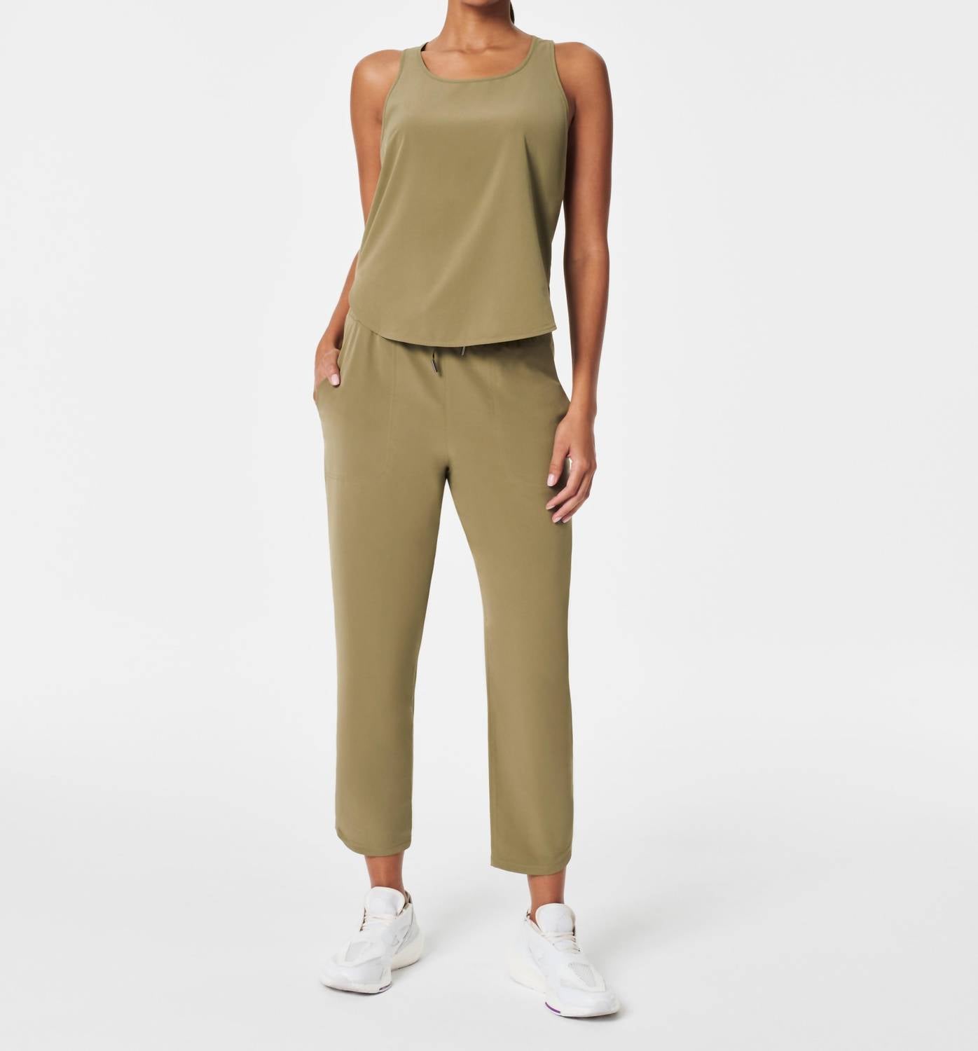 Fit, fabric and functionality. This tank top checks all the boxes. Chic Tuscan Olive sleeveless top. Crafted from polyester and features a stylish scoop neck and a curved hemline to enhance your silhouette. Designed with a pull-on closure. Made from sweat-wicking fabric with a 4-way stretch for unbeatable comfort. Care for it by machine washing and tumble drying.