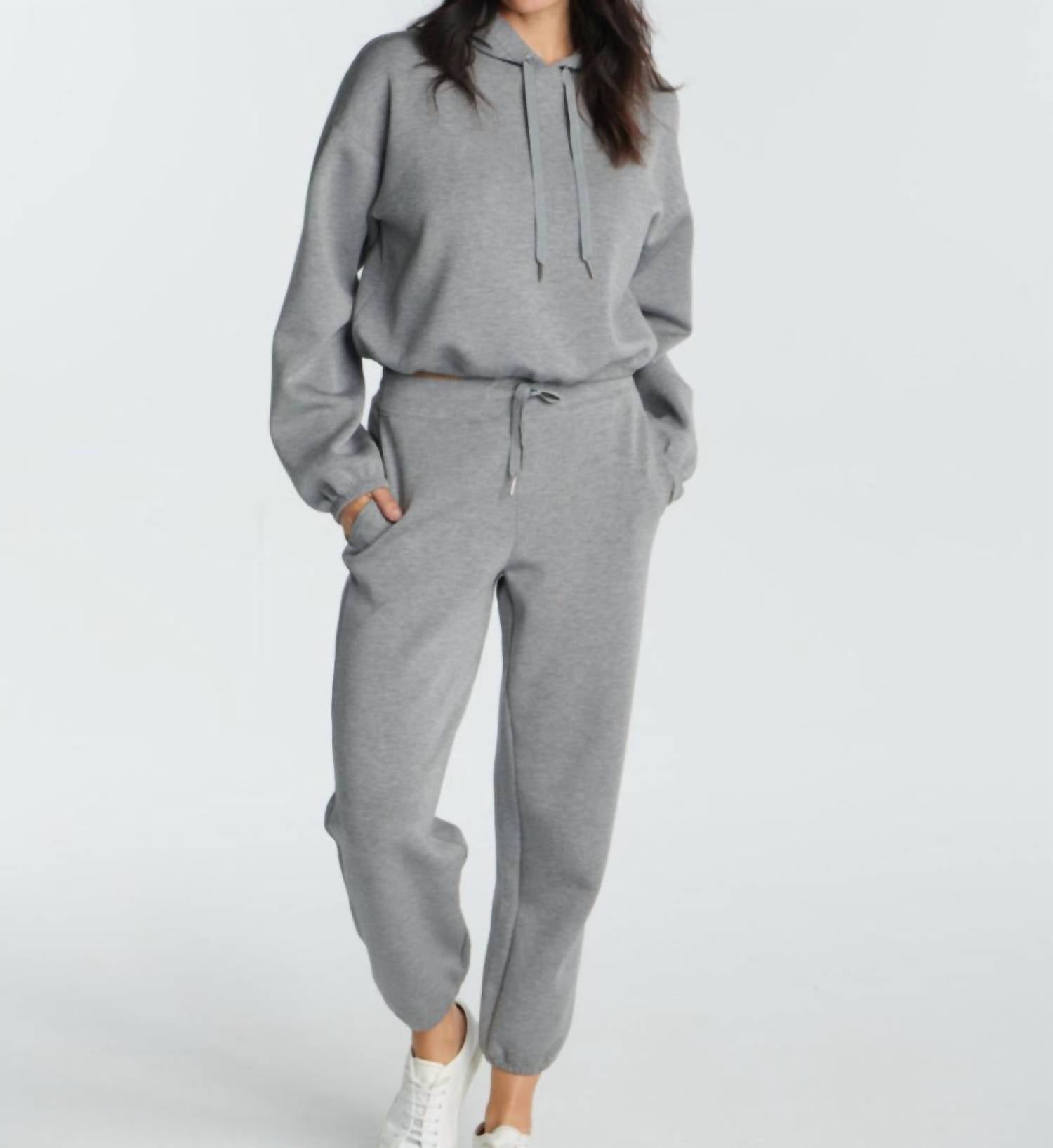The Cinched Hoodie by Spanx offers luxurious comfort in a stylish athleisure design. Made from lightweight and drapey AirEssentials spacer fabric, this hoodie combines a modal composition with a long sleeve, waist-skimming length, and elasticized hem for a chic cinched look. Featuring a solid medium heather grey color, the hoodie includes a practical zip closure and a hooded neckline. This women's piece is perfect for winter game days and pairs convenience with style thanks to its machine washable, tumble dry care instructions.