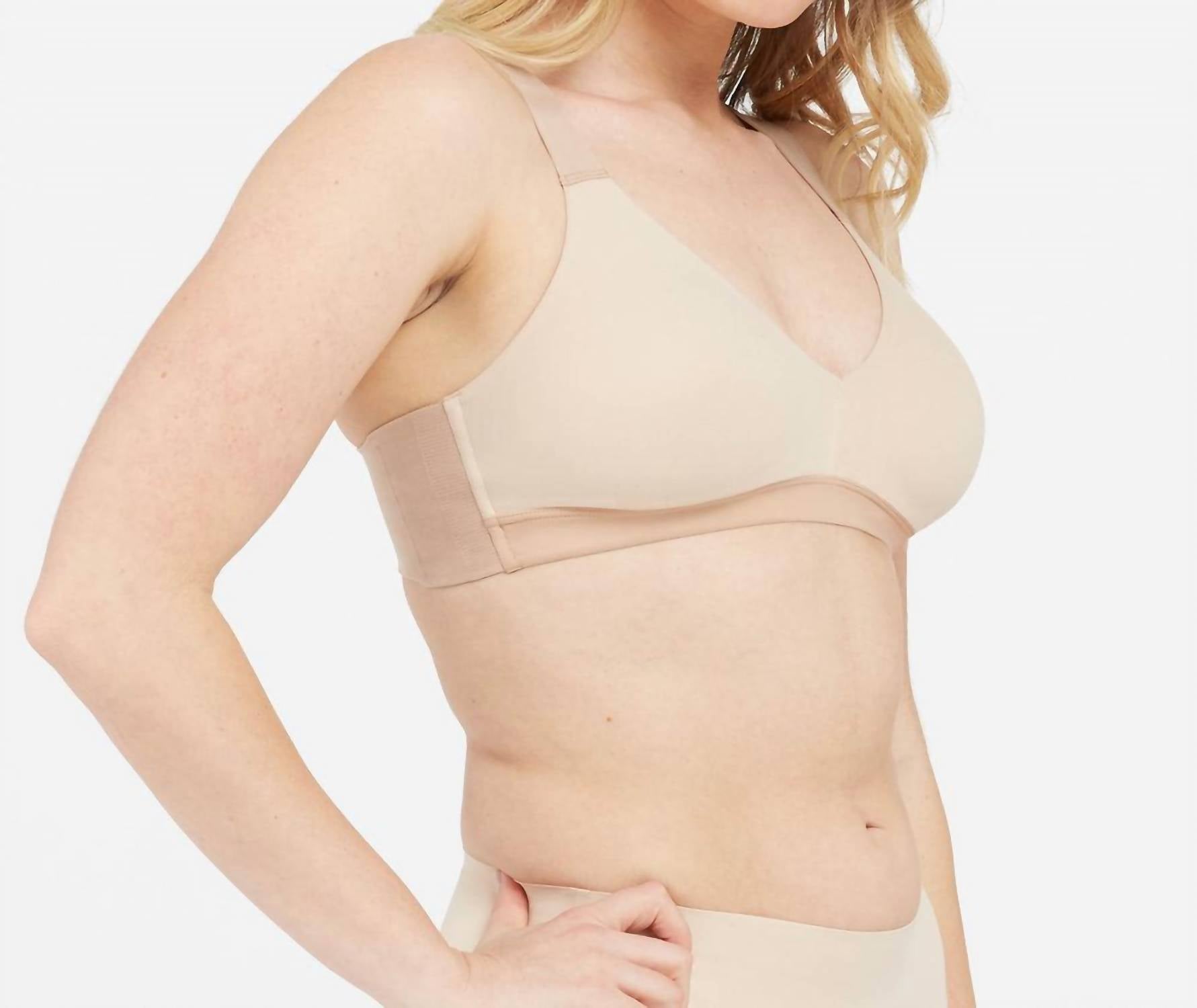 Introducing the Spanx Lightly Lined Bralette in Naked, the ultimate t-shirt bra for everyday wear. This women’s bralette offers lightly padded cups for modest coverage and features a hosiery back that smooths your silhouette without the need for hardware or wires. Crafted from a comfortable nylon blend, the bust composition is 72% Nylon and 28% Elastane, while the wing varies slightly by size to offer more Lycra® Elastane for a snug fit. Care for your bralette by hand washing it in cold water and laying it flat to dry. Item #30036R.