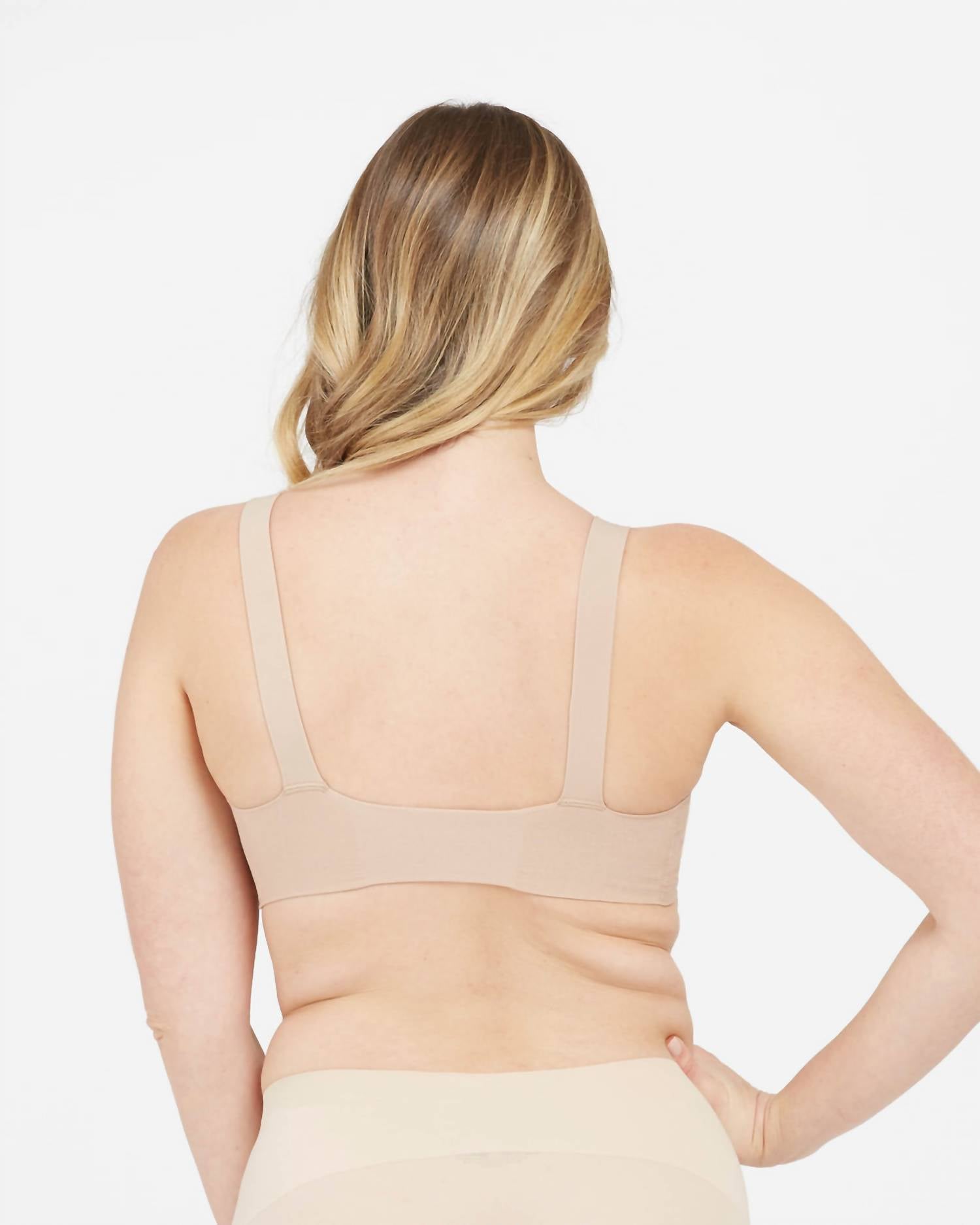 Both pretty and functional. Need we say more? Introducing the Spanx Lightly Lined Bralette in Naked, the ultimate t-shirt bra for everyday wear. This women’s bralette offers lightly padded cups for modest coverage and features a hosiery back that smooths your silhouette without the need for hardware or wires. Crafted from a comfortable nylon blend, the bust composition is 72% Nylon and 28% Elastane, while the wing varies slightly by size to offer more Lycra® Elastane for a snug fit. Care for your bralette by hand washing it in cold water and laying it flat to dry. Item #30036R.