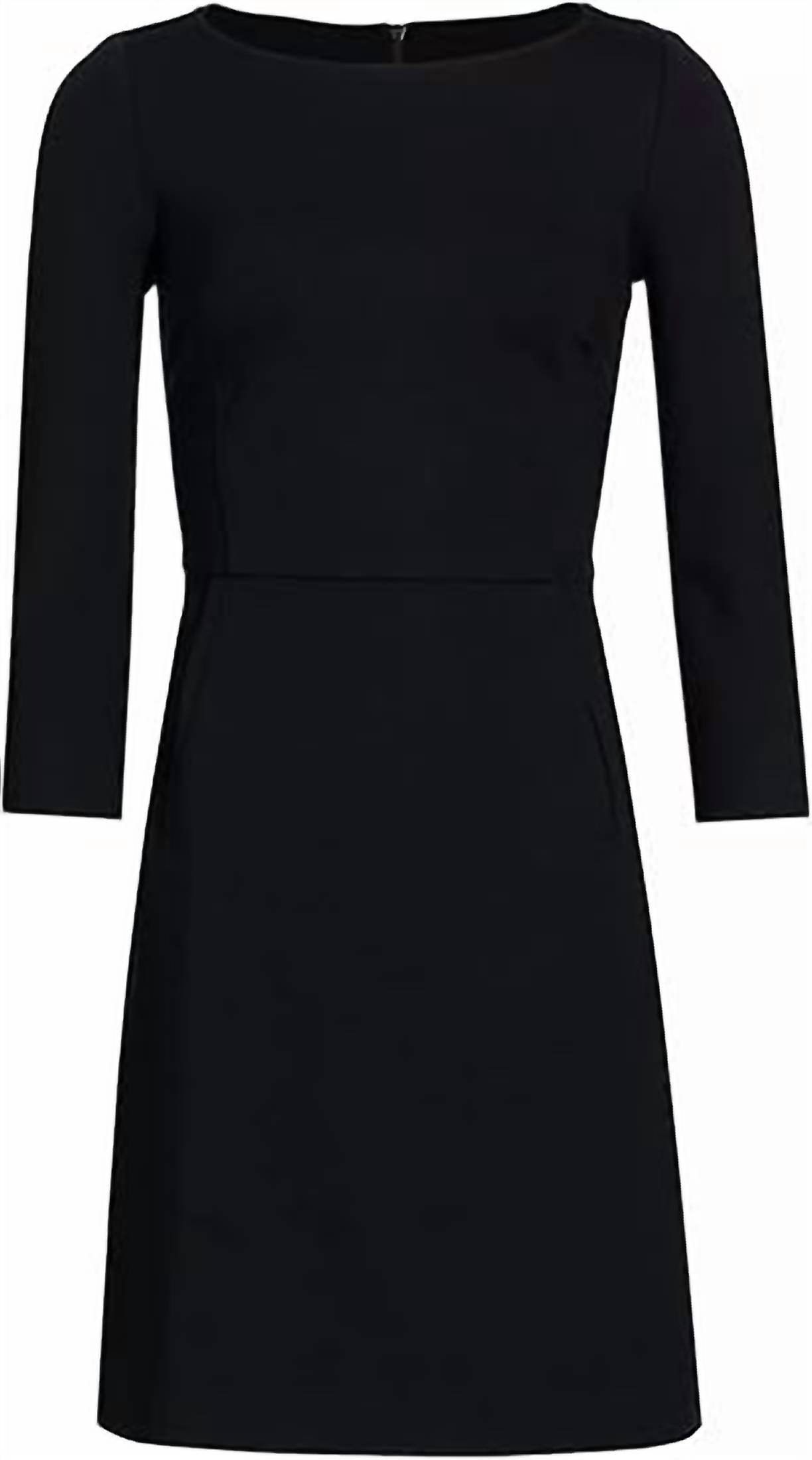 The perfect mini dress for those warmer months. Elevate your wardrobe with the Perfect A-line 3/4 Sleeve Dress by Spanx, featuring a solid classic black color and a flattering A-line silhouette. Crafted from smoothing premium rayon ponte fabric with 4-way stretch, this mini dress is designed for comfort and style. It includes functional pockets and a versatile zip closure. Care for this elegant piece is simple with cold water wash and lay flat to dry.