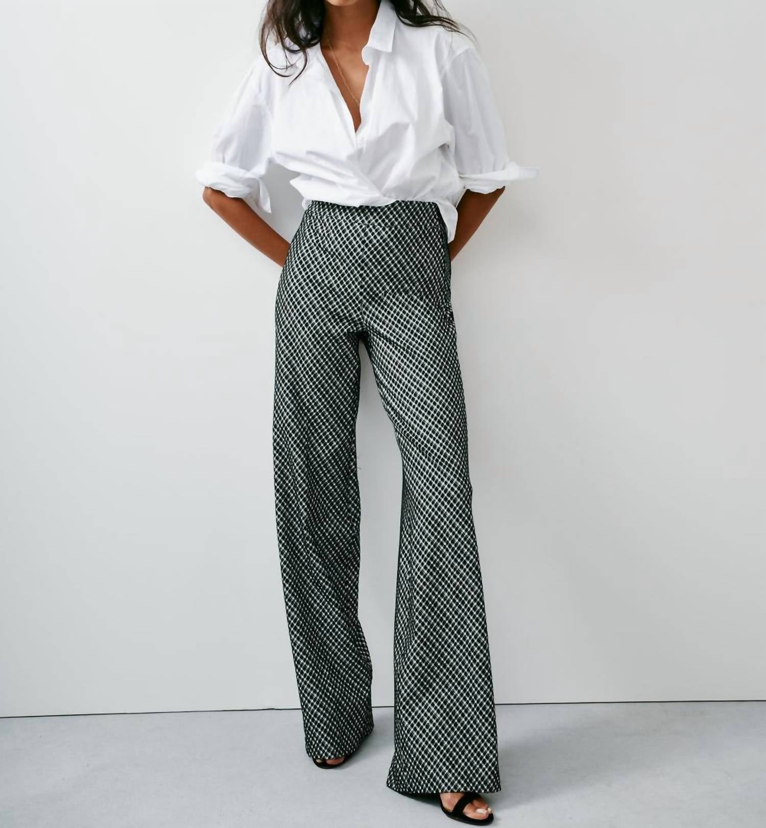 Step into sophisticated style with the Ponte Jacq Wide Leg Pant by Spanx, featuring a flattering wide leg and a comfortable high-rise waist. Made with premium ponte fabric that includes 4-way stretch and built-in targeted compression, these pants ensure a smooth silhouette from tummy to hip. Composition: Body comprises 47% Rayon, 46% Nylon, and 7% Elastane; Lining is 80% Polyester, 20% Elastane; Trim is 95% Polyester, 5% Elastane. Closure: No zippers or buttons for a sleek, bulk-free look. Care: Machine wash cold on gentle cycle, line dry, and low iron if needed or opt for dry cleaning. The jacquard pattern woven directly into the fabric adds a touch of elegance, ideal for pairing with the matching Ponte Lady Jacket.