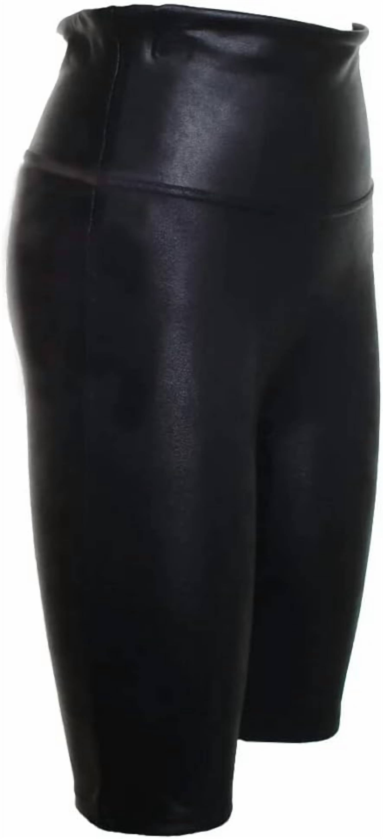 The bike short trend is here to stay and we especially love this style for its design detail and soft fabric.Faux leather bike shorts. Featuring our contoured power waistband. Comfort and flexibility. Slim fit. Designed to hit at natural waist. Machine wash cold, gentle cycle. 87% Nylon, 13% Elastane with polyurethane coating. Lining: 80% Polyester, 20% Elastane.